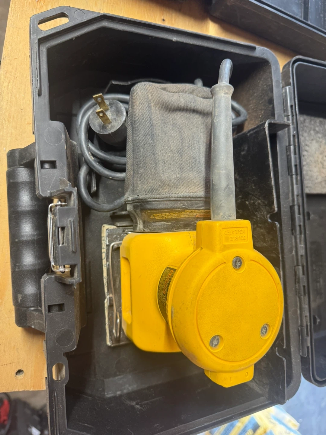 I'm selling a used DeWalt cordless drill and sander set. It comes with the drill, sander, battery, and charger, all in a DeWalt carrying case. Great for various projects!