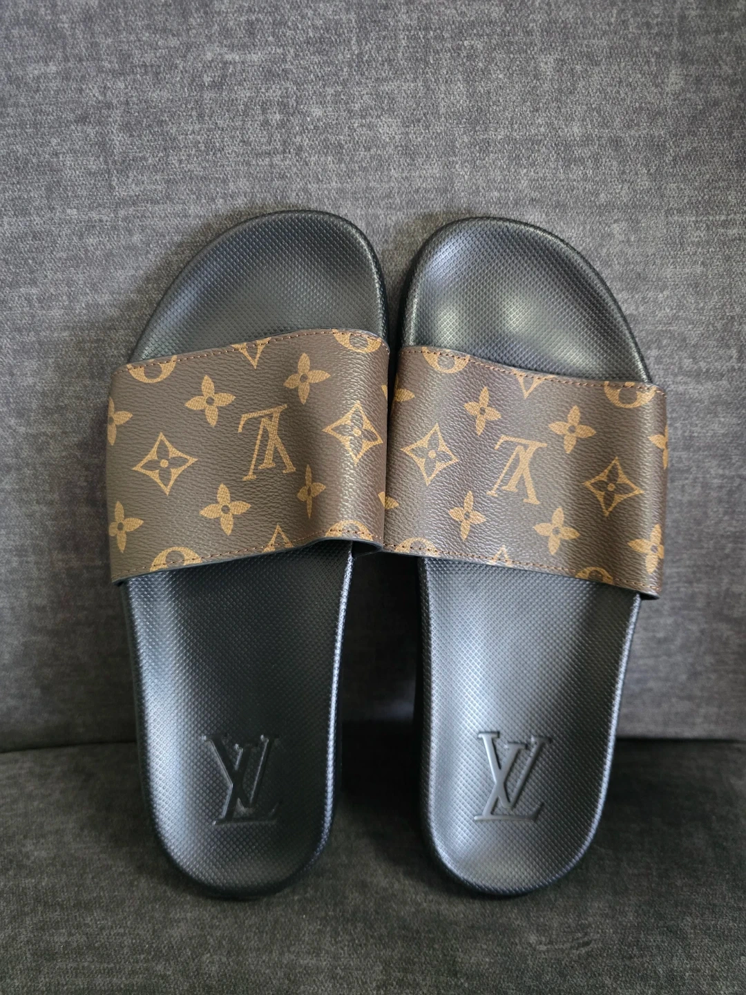 These slides feature the iconic pattern across the strap. Made with a comfortable footbed and durable sole. Great for casual wear!