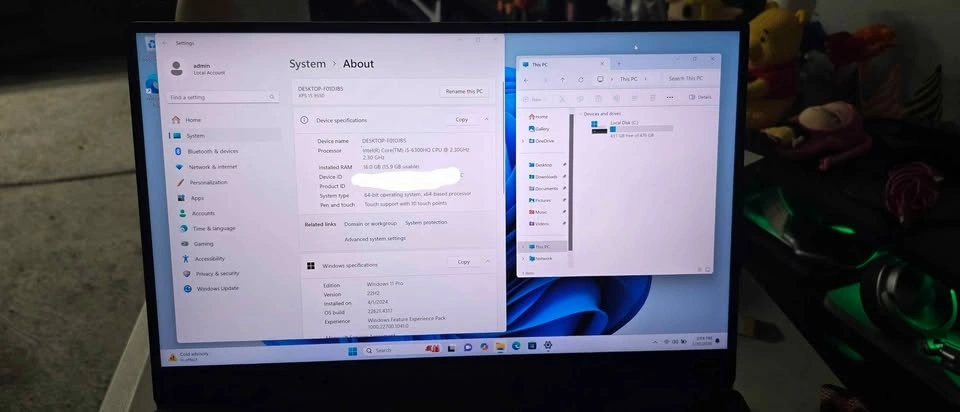 Dell XPS 9550 i5 Laptop with 500gb SSD (upgraded from 256gb) and 16gb RAM (upgraded from 8gb). Comes with Windows 11 PRO and a touch screen. I kept this laptop as a backup, and it was never used by my kids. The battery was replaced with a new 91mah battery, so it has amazing battery life now. It's very clean.
