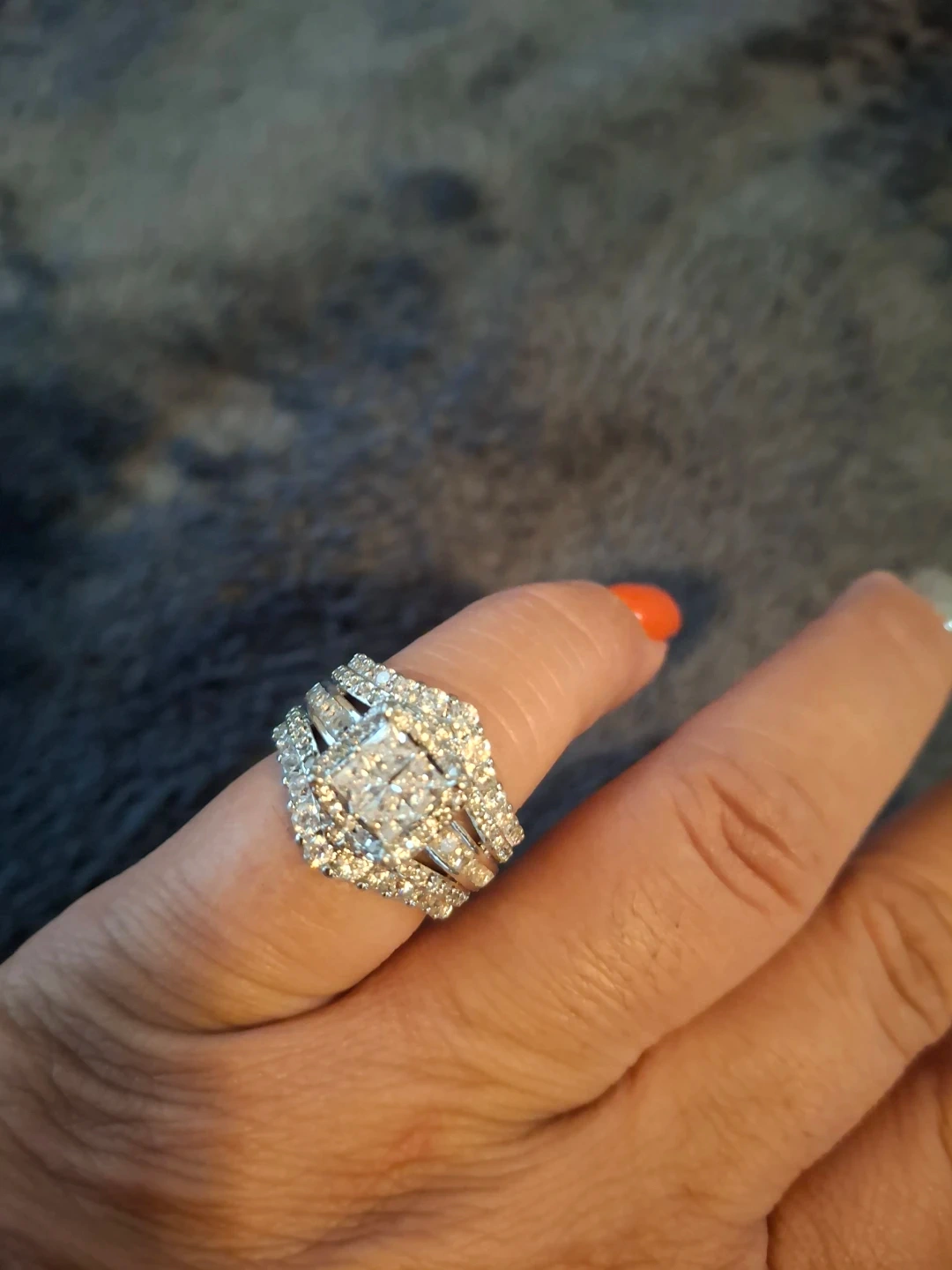 60Selling a beautiful diamond ring set. The diamonds are set in a silver-colored metal. It's a stunning piece! SIZE 7