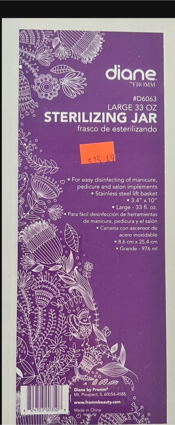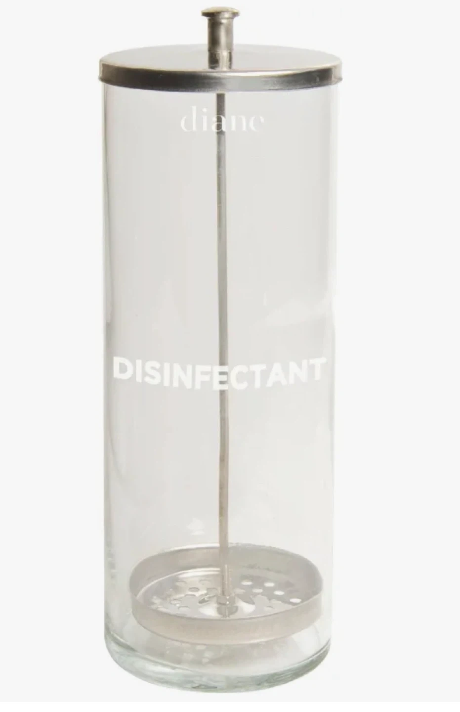 Selling a Diane Sterilizing Jar, large size (33 oz). It's perfect for disinfecting. It features a stainless steel lift basket and measures approximately 3.4" x 10".