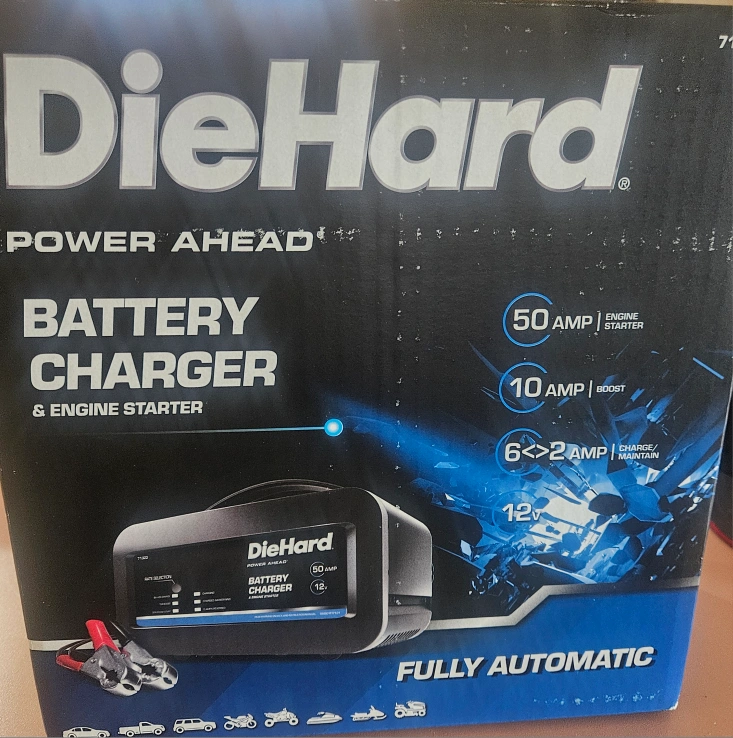 51Selling a DieHard battery charger and engine starter. It's a fully automatic charger with 50 Amp engine start, 10 Amp boost, and 6<>2 Amp charge/maintain settings