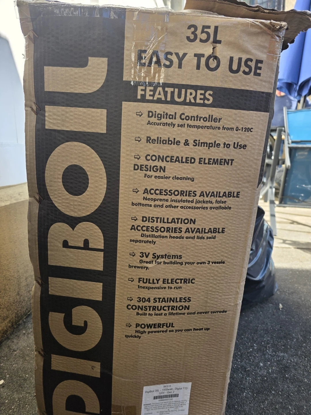 84Selling a DigiBoil 35L digital electric boiler! It's easy to use and has a digital controller to accurately set the temperature from 0-120C. It's reliable and simple to use, with a concealed element design for easier cleaning. Accessories are available, including neoprene insulated jackets, false bottoms, and other accessories. It is fully electric and inexpensive to run, with 304 stainless steel construction built to last a lifetime and never corrode. It's also powerful, so you can heat up quickly! The box is included. It’s great for Candle Making.