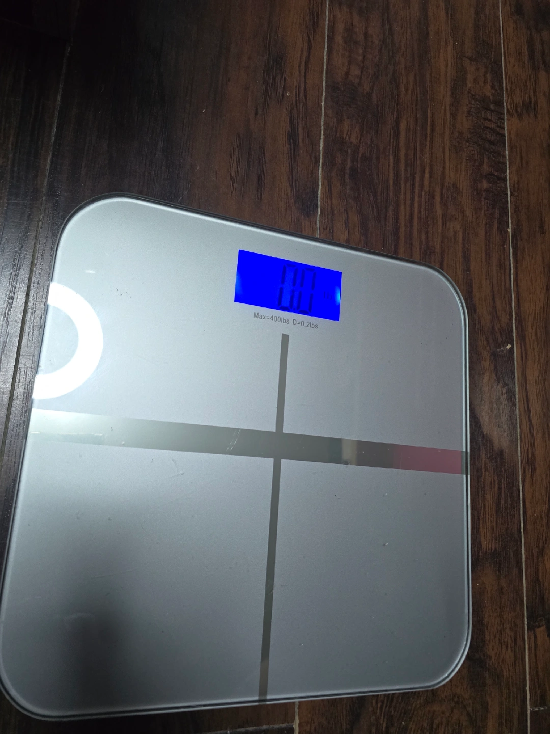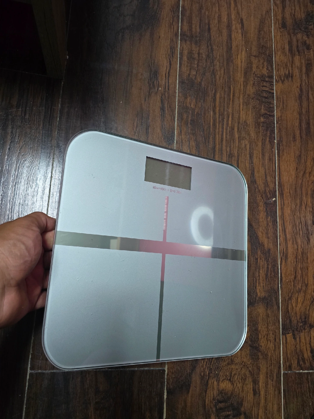 Selling a digital body weight scale in silver color. It measures weight in pounds and kilograms, with a maximum capacity of 400 lbs. The scale shows the weight clearly on the digital screen.