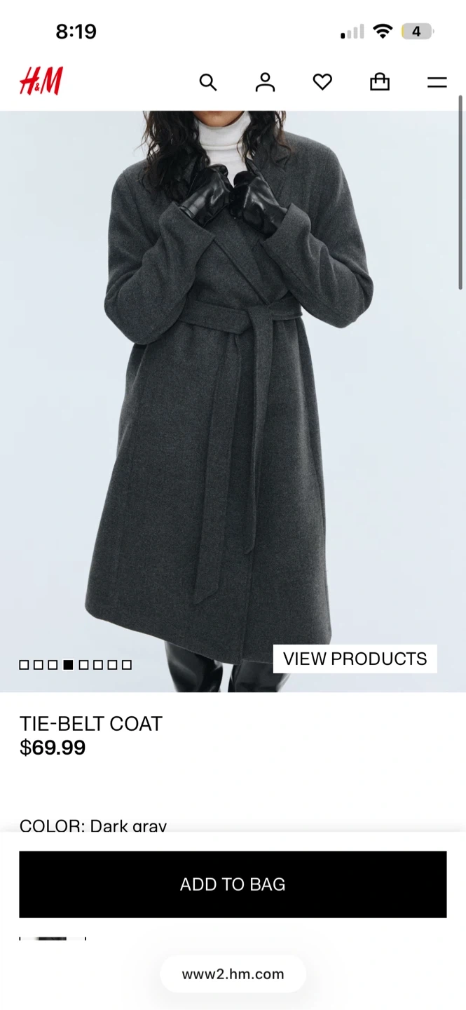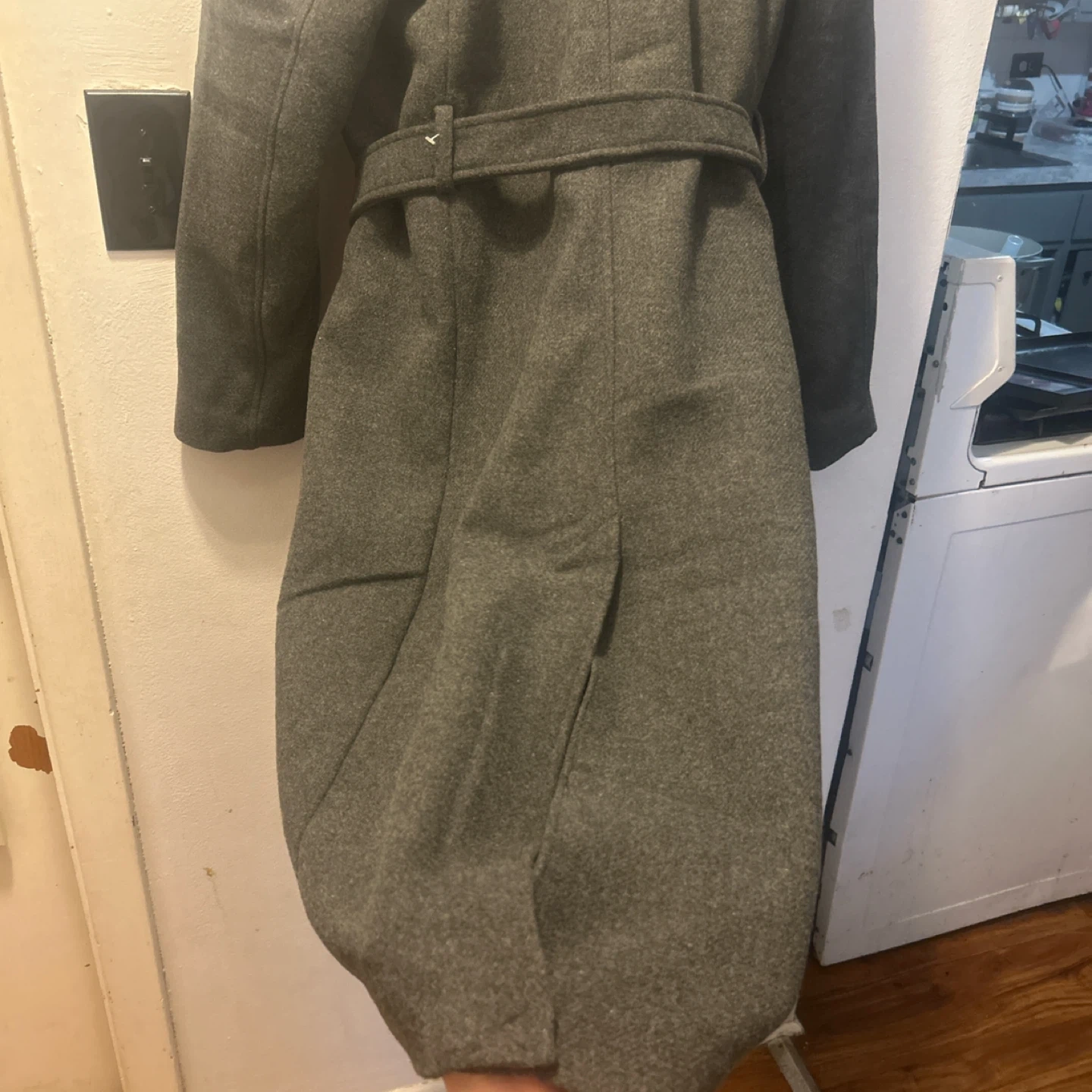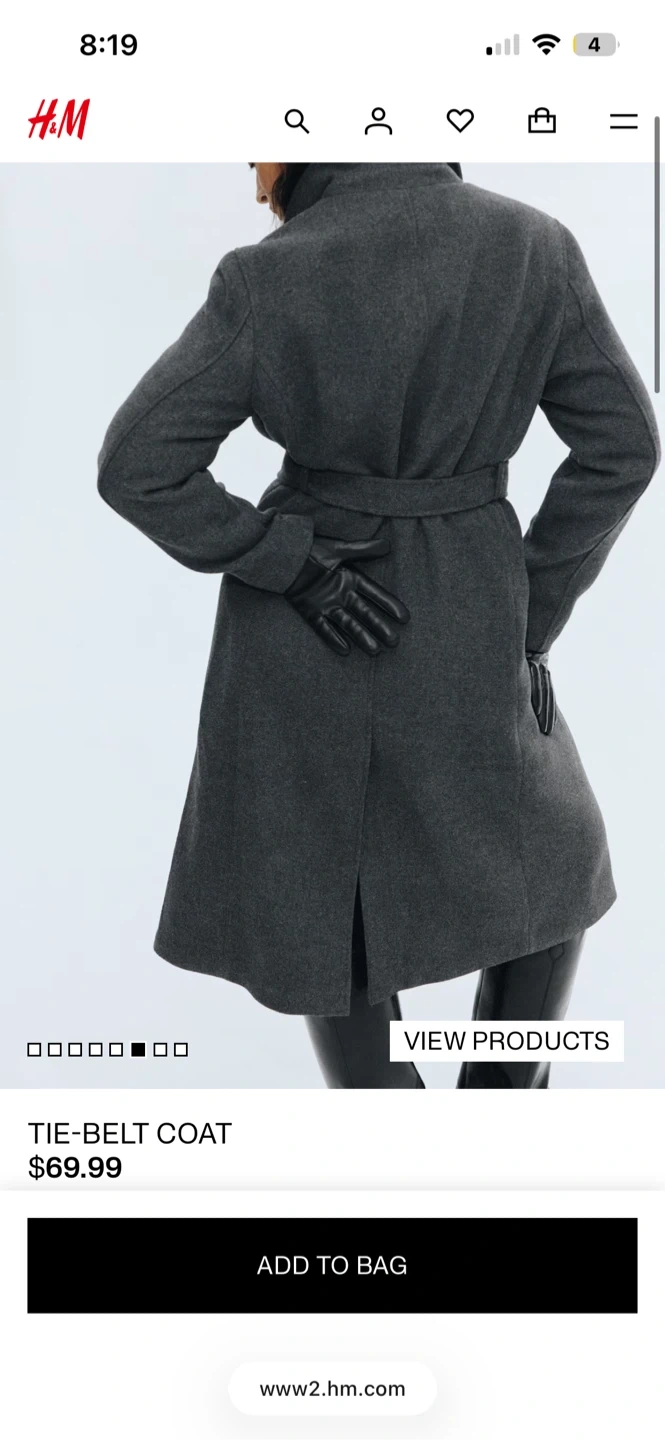 Selling a stylish H&M tie-belt coat in dark gray! It's a beautiful coat that originally retailed for $69.99. This coat is perfect for adding a touch of elegance to any outfit. It features a tie-belt to cinch the waist and give a flattering silhouette