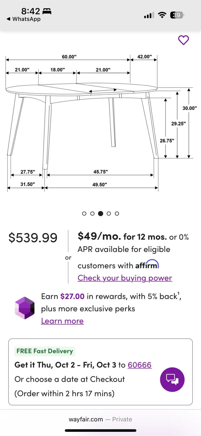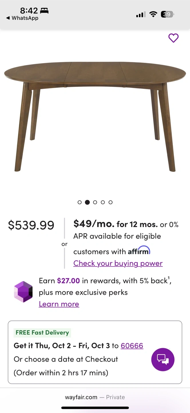 Wayfair Brilliana Oval Metal Base Dining Table - 60"