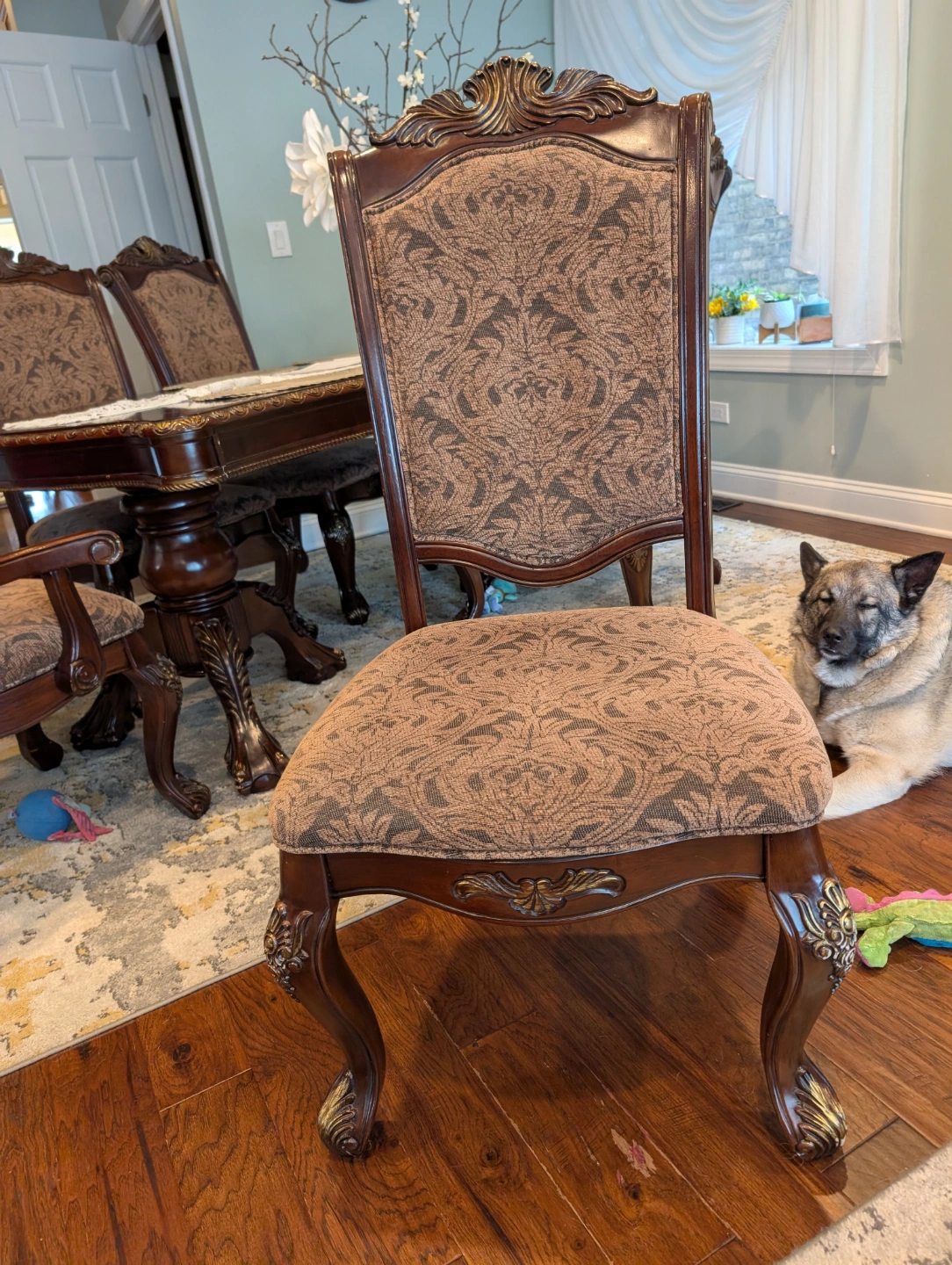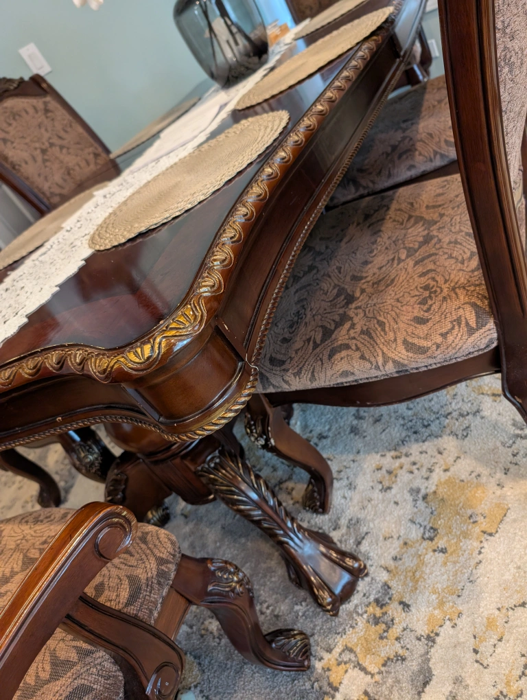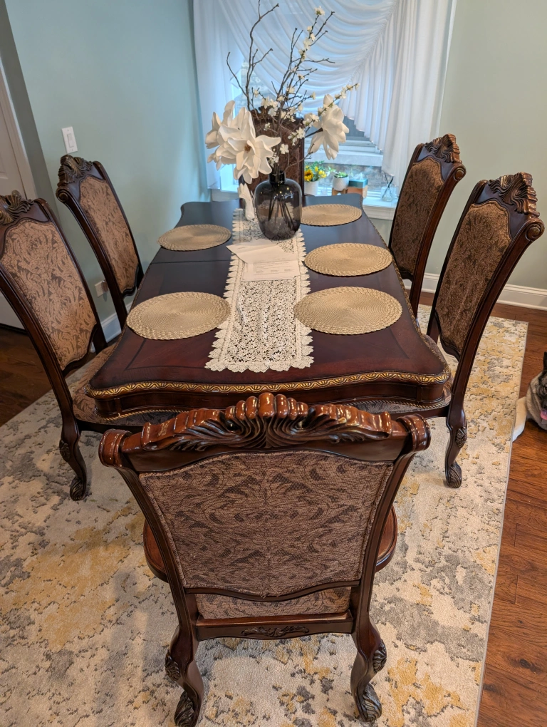 ## Extendable Dining Table and 6 Chairs for Sale! *Reason for Selling:* I'm updating my style and selling all furniture from my living room and dining room! *Table Details:* - Extendable table in very good condition (used) - Dimensions: 80" long x 40" wide (extends by approximately 40") - A stain on one part of the table (easily restorable) - Sturdy and functional *Chairs: - 6 matching chairs in good condition *Perfect for: - Anyone looking for a functional and affordable dining set If you're interested, send me a message!