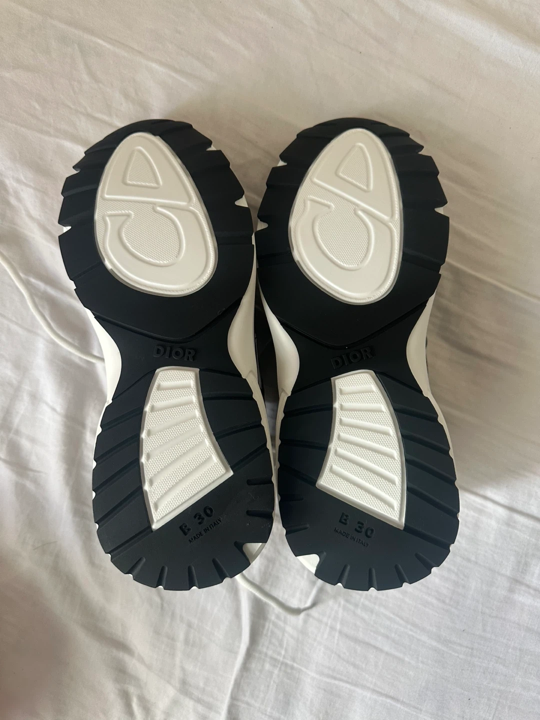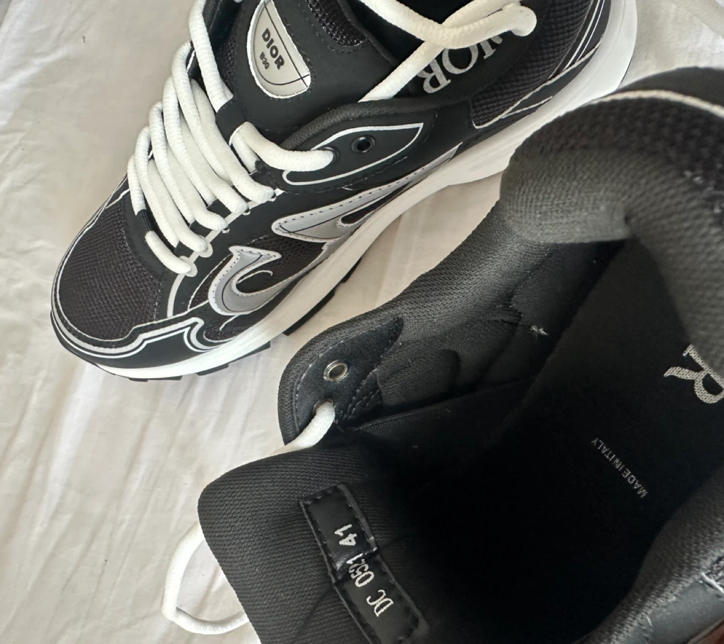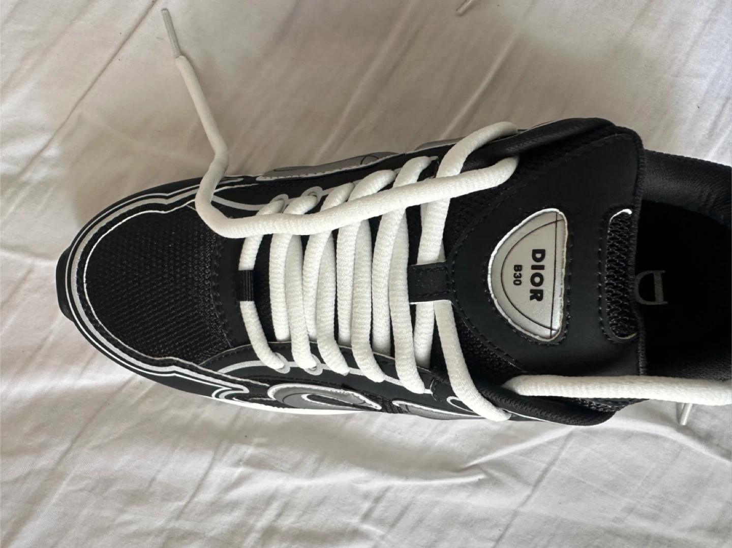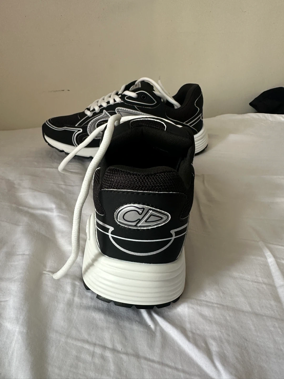 Selling a pair of Dior B30 sneakers in black and silver. New in Box