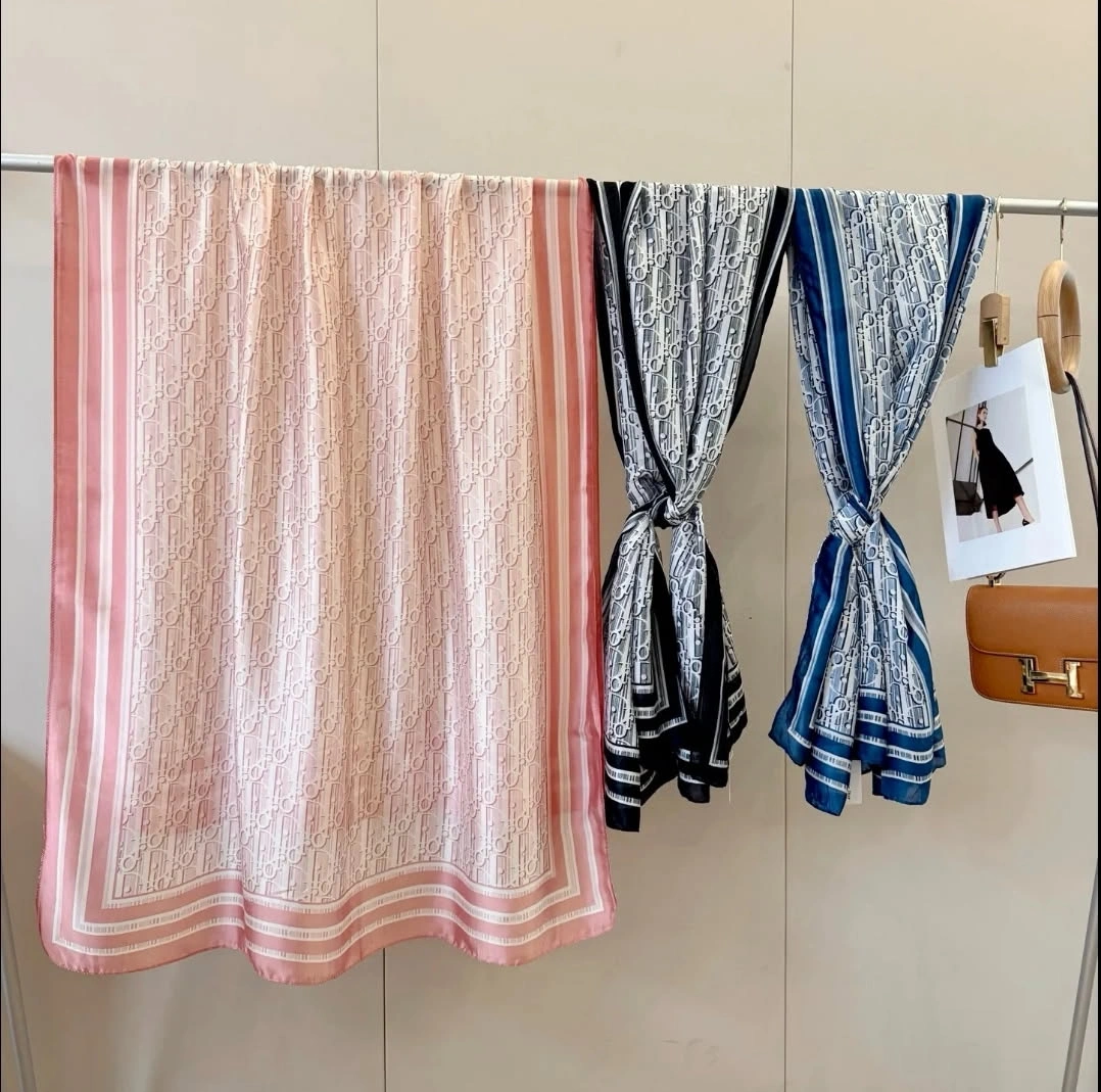 Beautiful Dior Oblique scarves in pink and navy. The iconic Dior Oblique pattern is instantly recognizable. These scarves are perfect for adding a touch of luxury to any outfit. They are made of high-quality material and are in excellent condition!