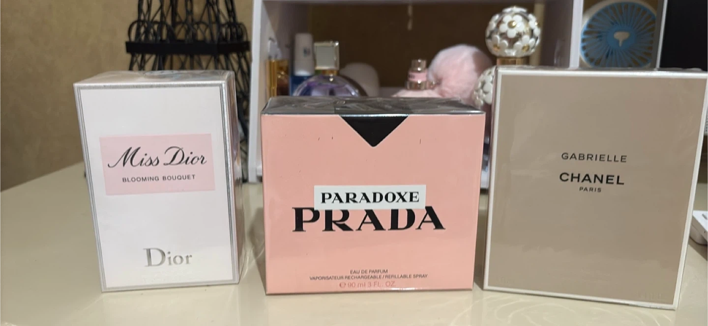 10Selling a set of three new perfumes: - Miss Dior Blooming Bouquet - Prada Paradoxe Eau de Parfum (90 ml / 3 fl oz) - Chanel Gabrielle Paris Sealed boxes , perfect for Xmas gifts . Or best offer