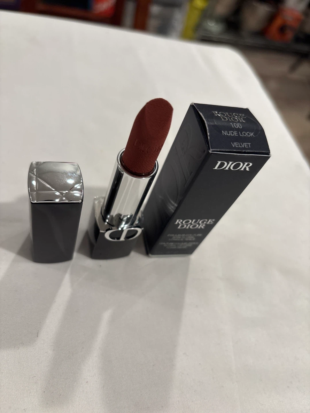 65Selling a Dior Rouge Dior lipstick in the shade 100 Nude Look Velvet! This lipstick is in great condition and comes with its original box