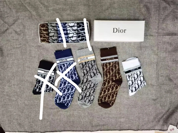 10brand new 4 pairs of Dior unisex socks 80 percent cotton n stretchy blend. with the box 2 brown 1 grey 1 white