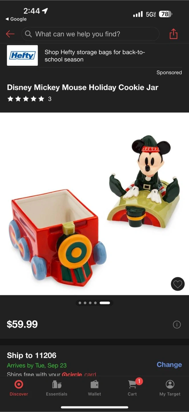 60Selling a Disney Mickey Mouse Holiday Cookie Jar! It's shaped like a train with Mickey Mouse on top. Originally sold for $59.99