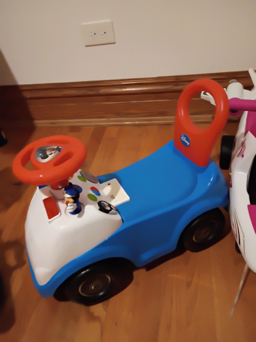 Here's a Disney Mickey Mouse Police Car Ride-On Toy! It's a fun ride-on car for kids. Featuring the iconic Mickey Mouse design, it's sure to bring joy to your little one