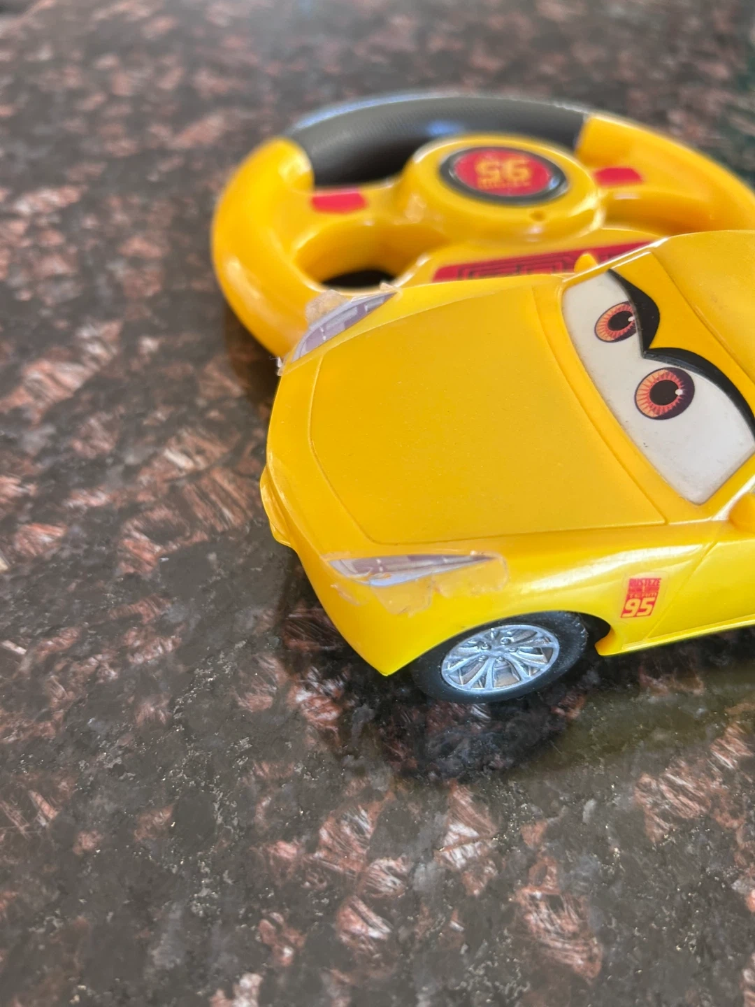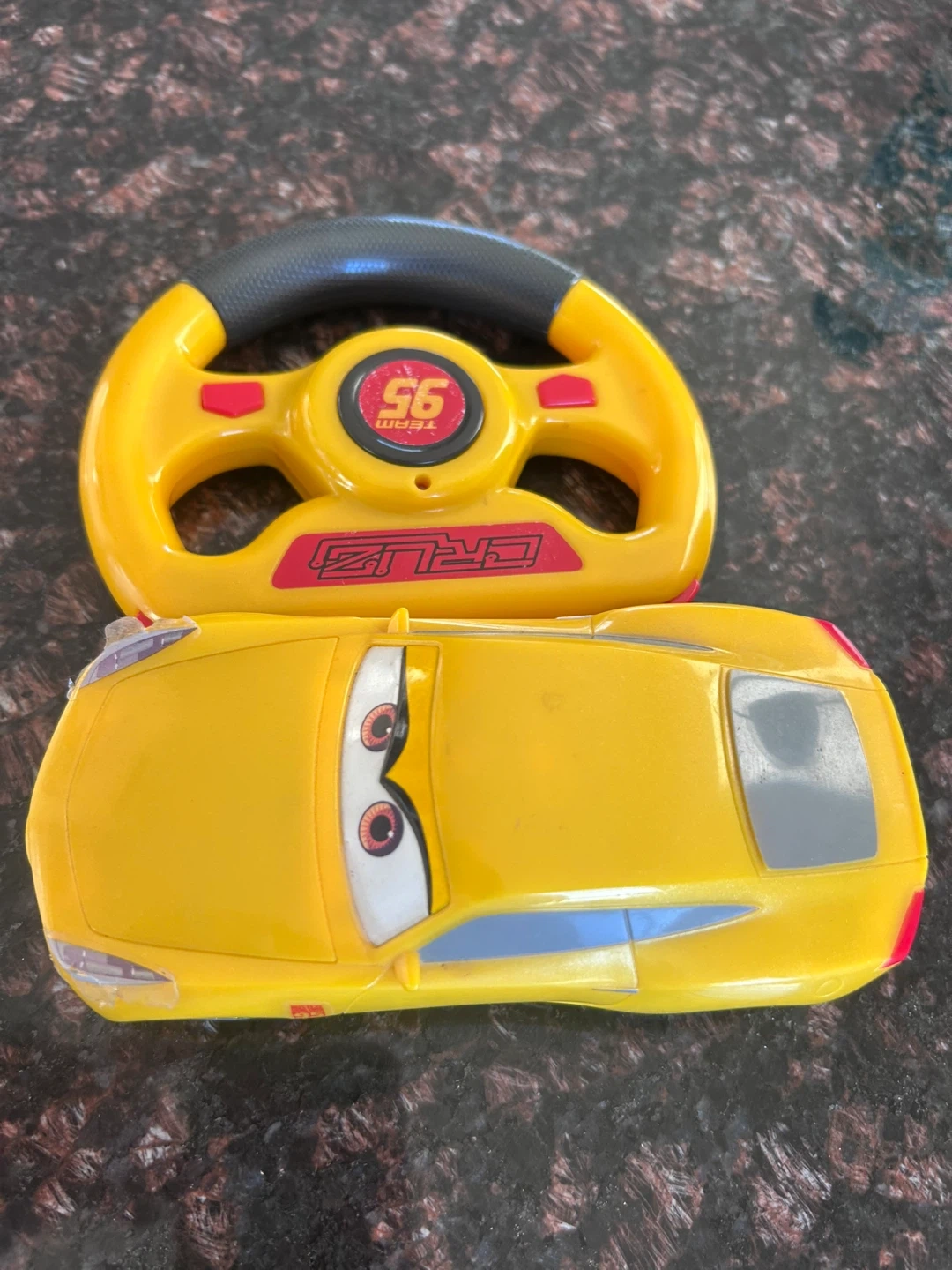Selling a Disney Pixar Cars remote control Cruz Ramirez toy. The car is yellow with the number 95 on the side. There are some signs of use.