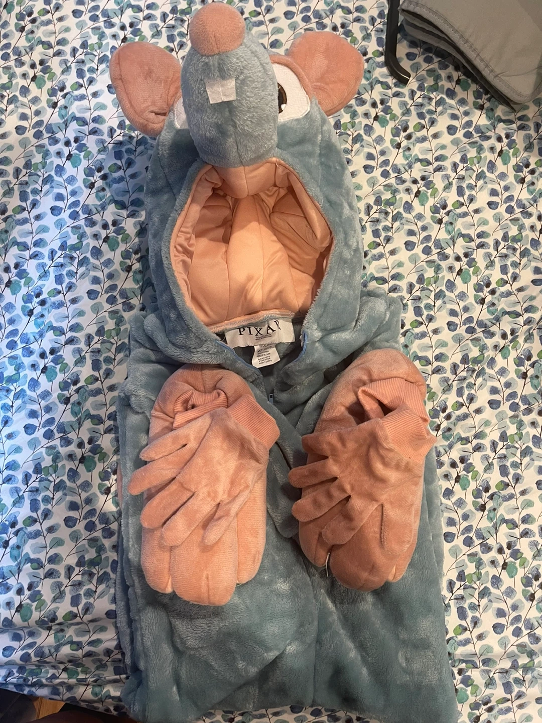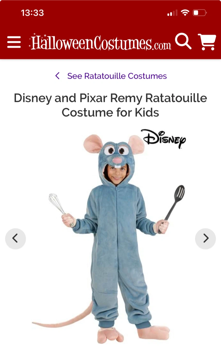 Selling a Disney and Pixar Remy Ratatouille costume for kids! It's in great condition and perfect for dress-up or Halloween. It features the adorable Remy character design, complete with a hood and attached gloves