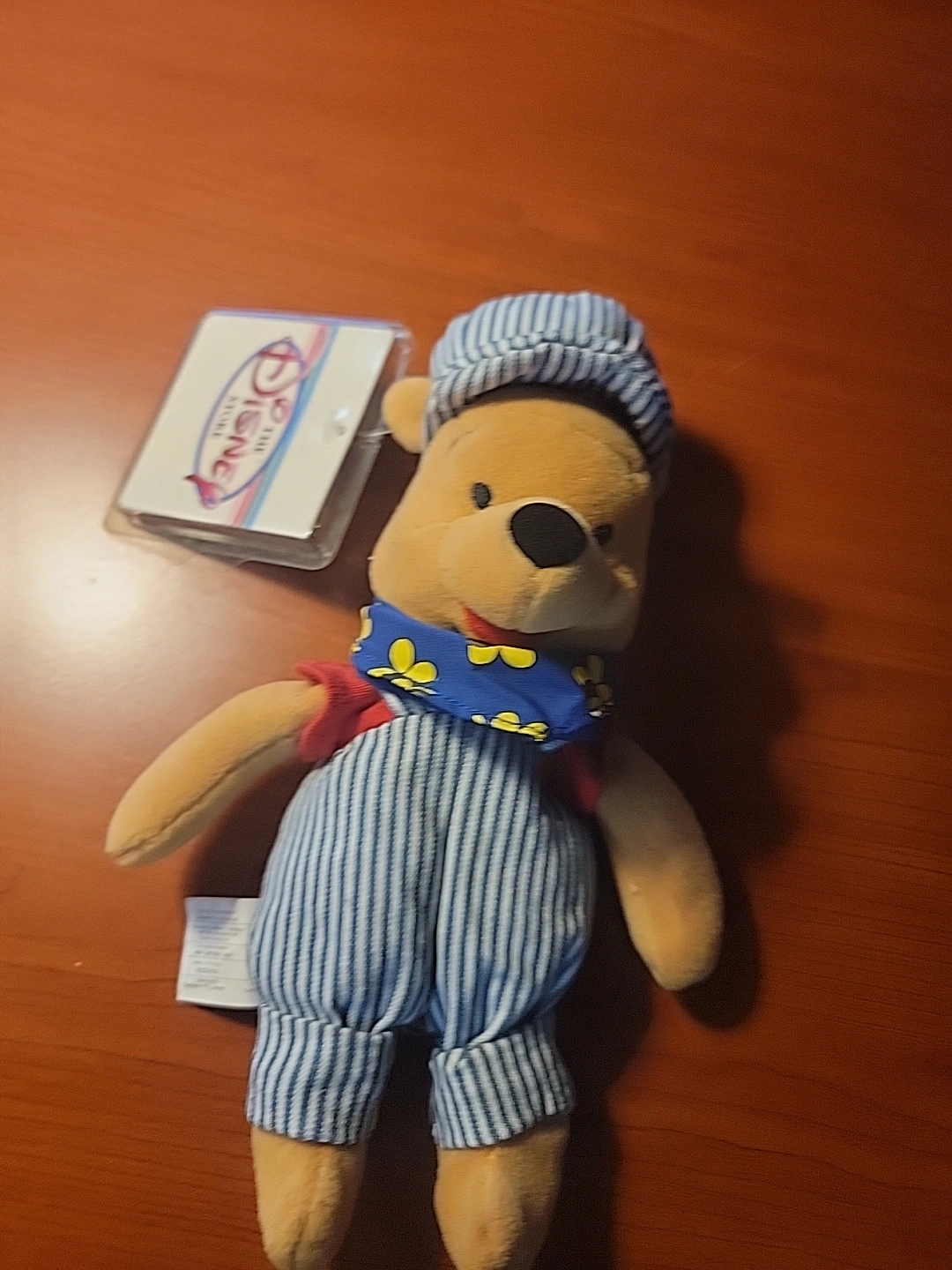 67I have a brand new Winnie the Pooh plush dressed as a train conductor! It's from the Disney Store and still has its original tag attached. This adorable plush is ready for a new home!