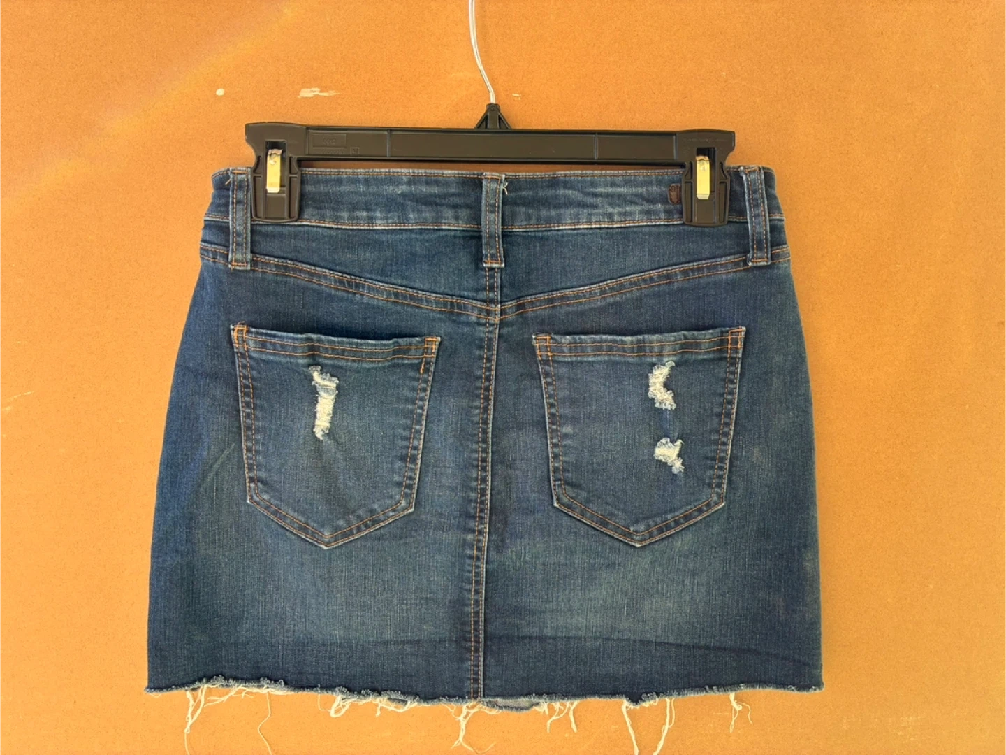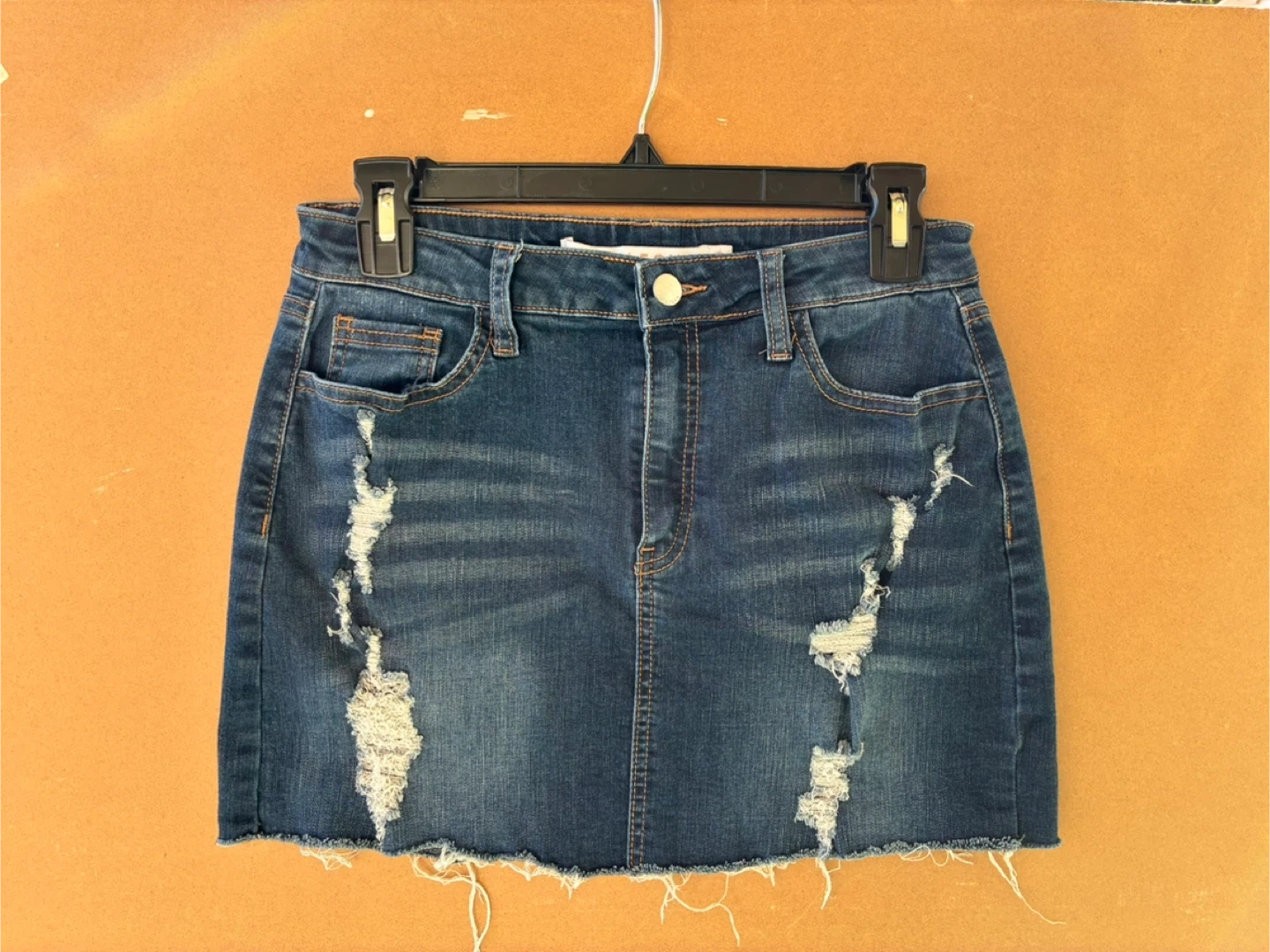 y2k denim mini skirt! It's a distressed style with a frayed hem. It's in great condition and ready for a new home