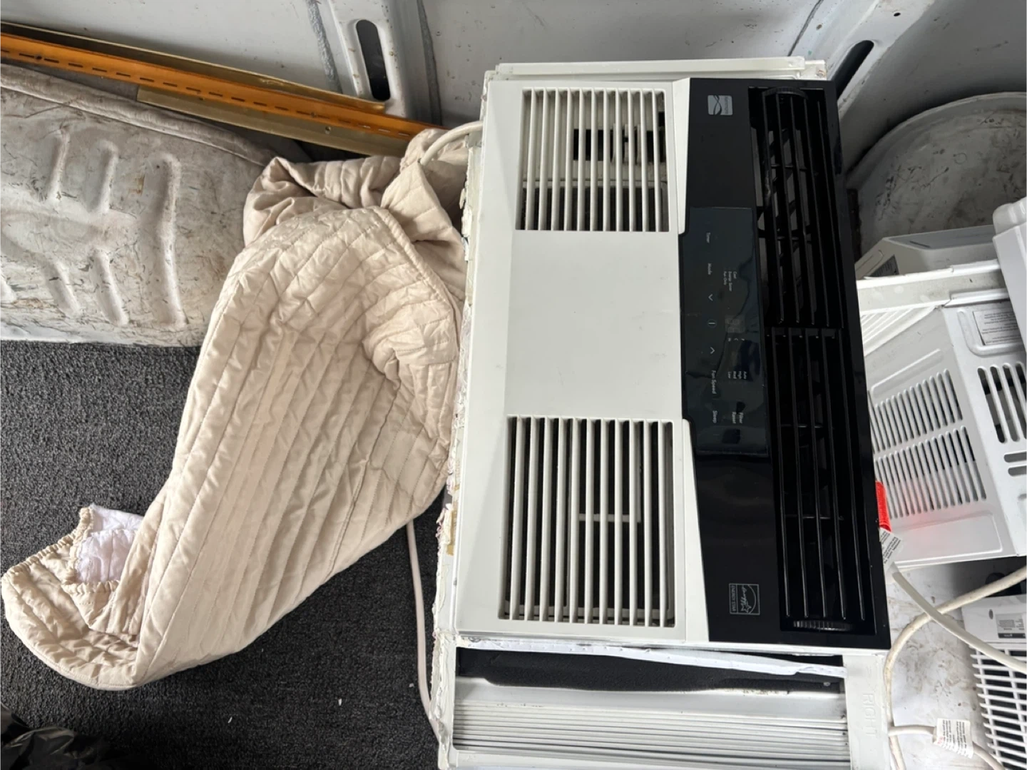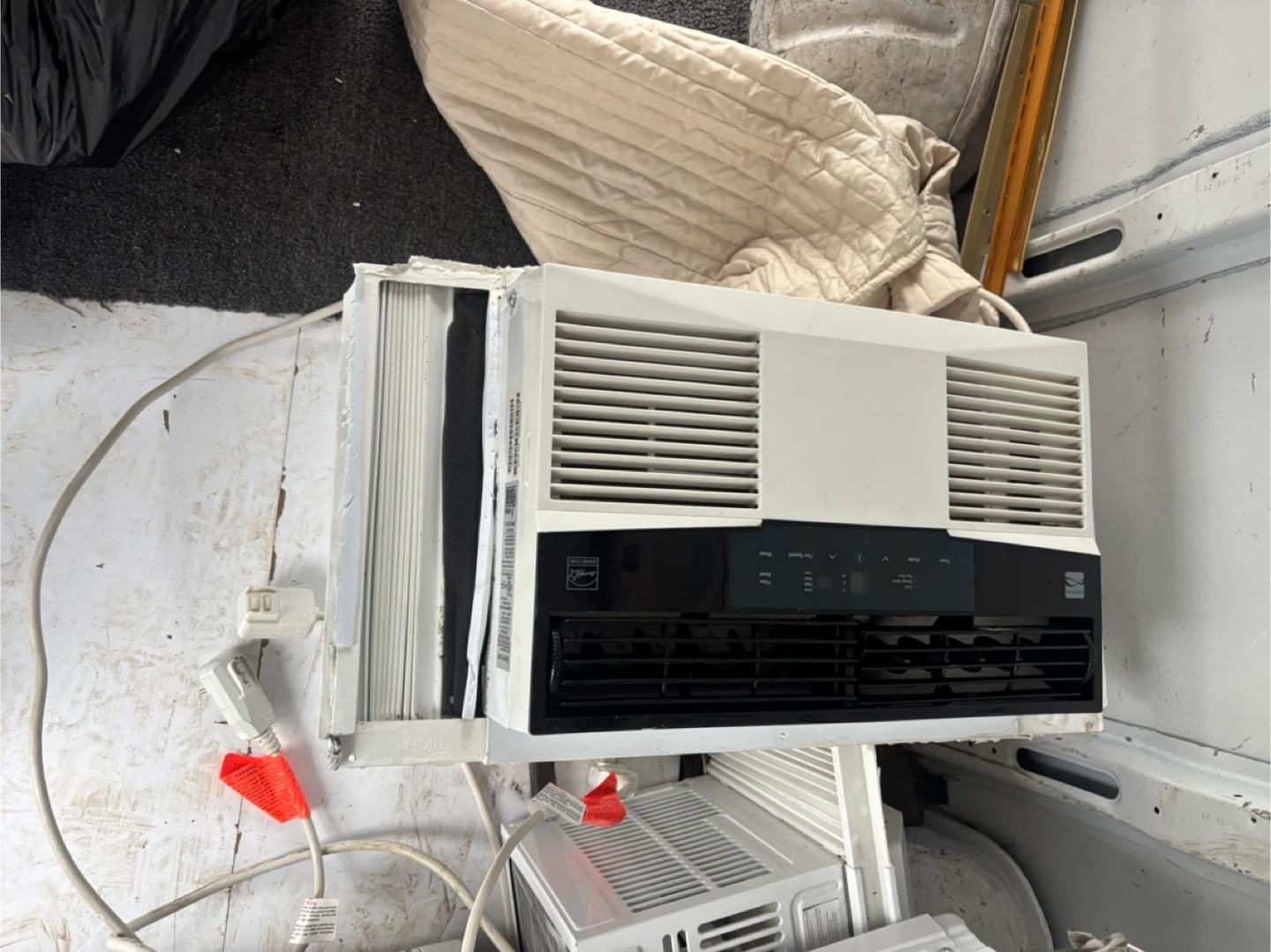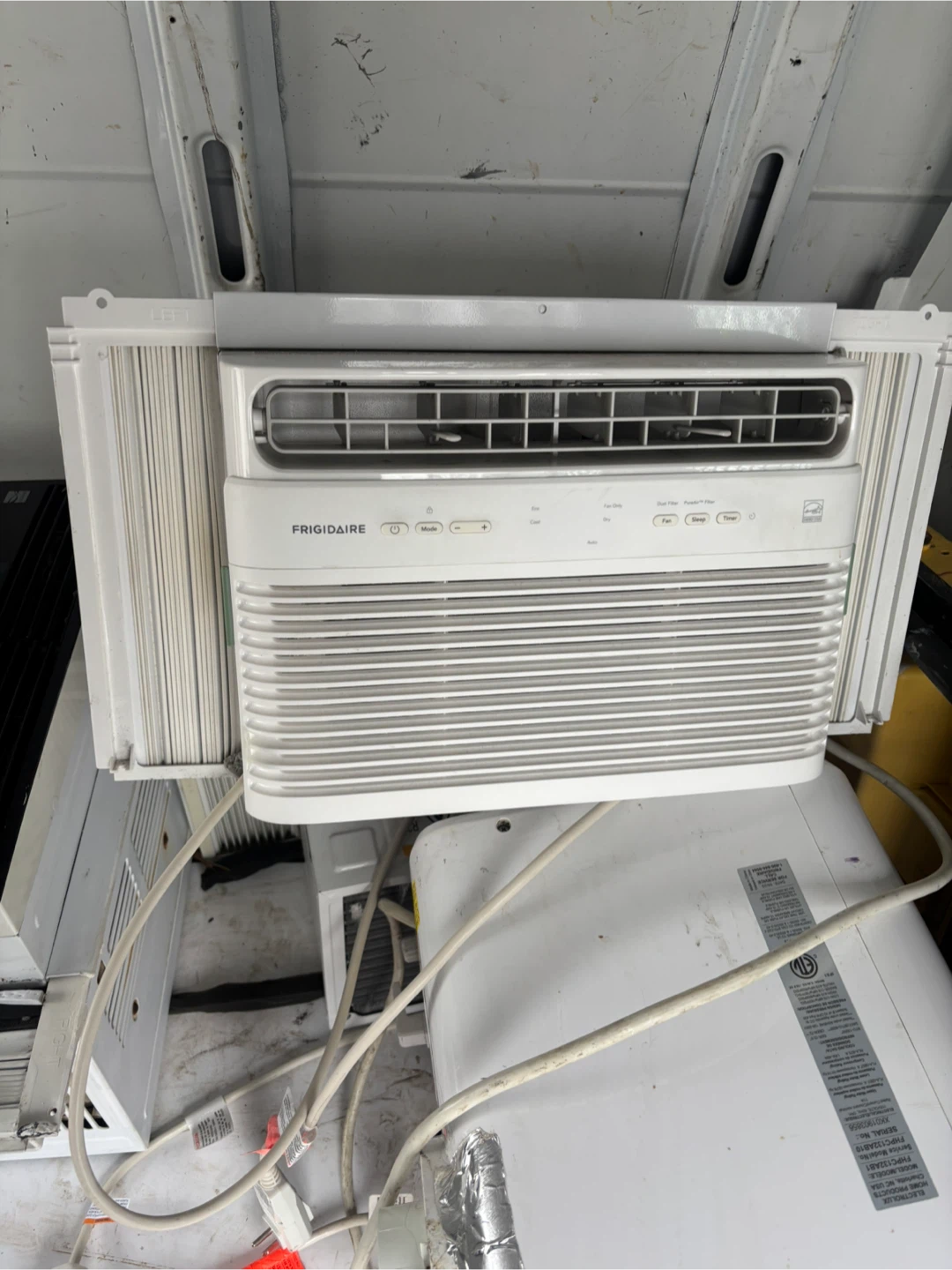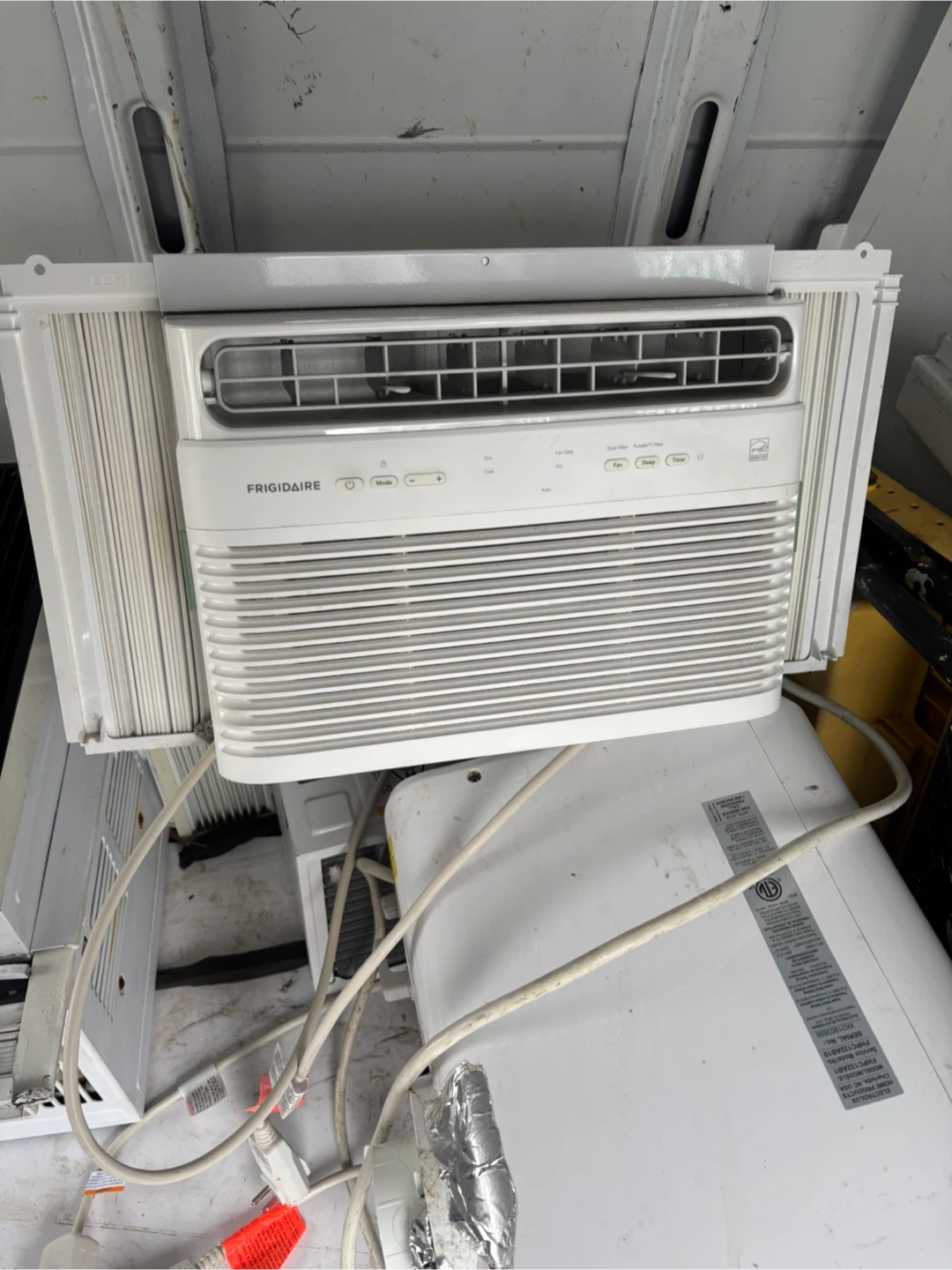 3 AC in great condition all working well ! White Frigidaire window air conditioner. It's a standard window unit for cooling your space. Comes with adjustable side panels for a custom fit.