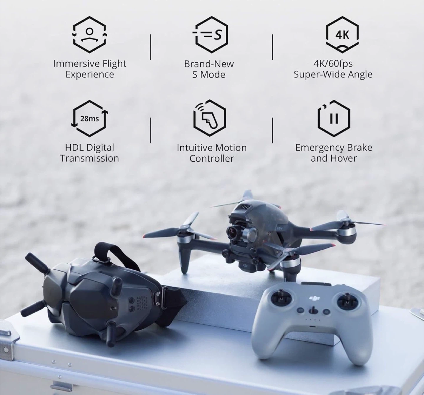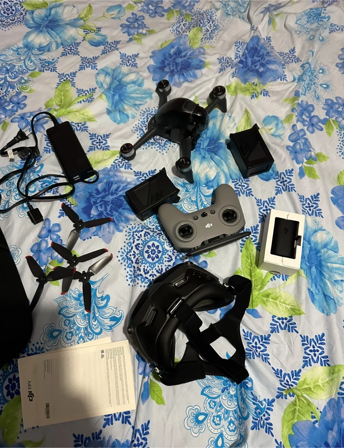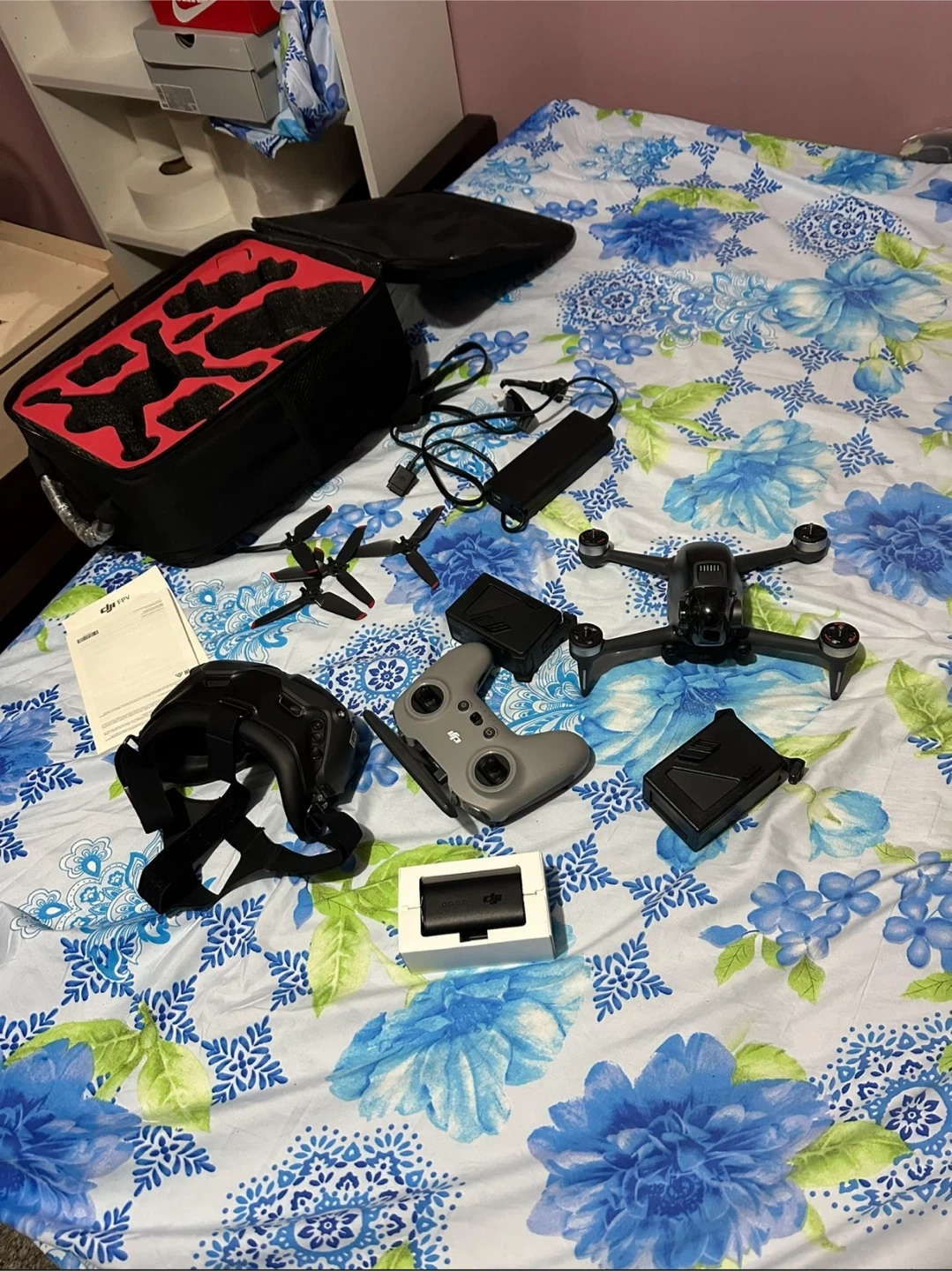 Selling a DJI FPV Drone Combo! It offers an immersive flight experience with its intuitive motion controller and 4K/60fps super-wide angle camera. The combo includes the drone, goggles, remote controller, batteries, and charger. Enjoy brand-new S Mode and emergency brake and hover features for a safer and more exciting flight!