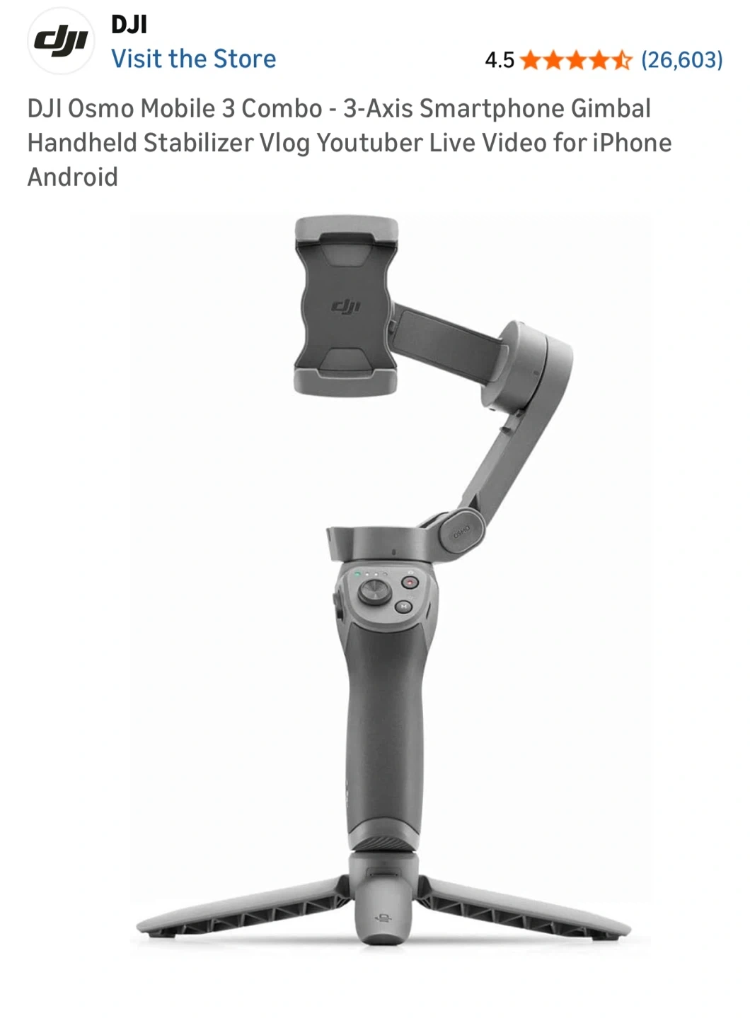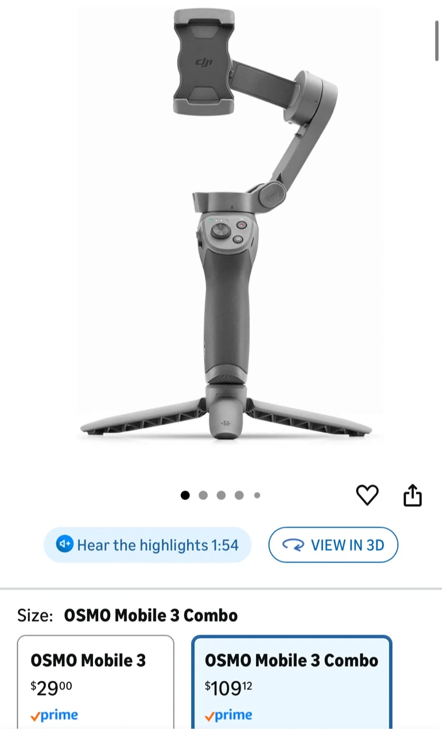 Selling a DJI Osmo Mobile 3 Combo. It's a 3-Axis Smartphone Gimbal Handheld Stabilizer perfect for Vlog, Youtuber, and Live Video for iPhone and Android. It comes with all the accessories in the original combo, including the carrying case, wrist strap, and mini tripod! Never used - NEW.