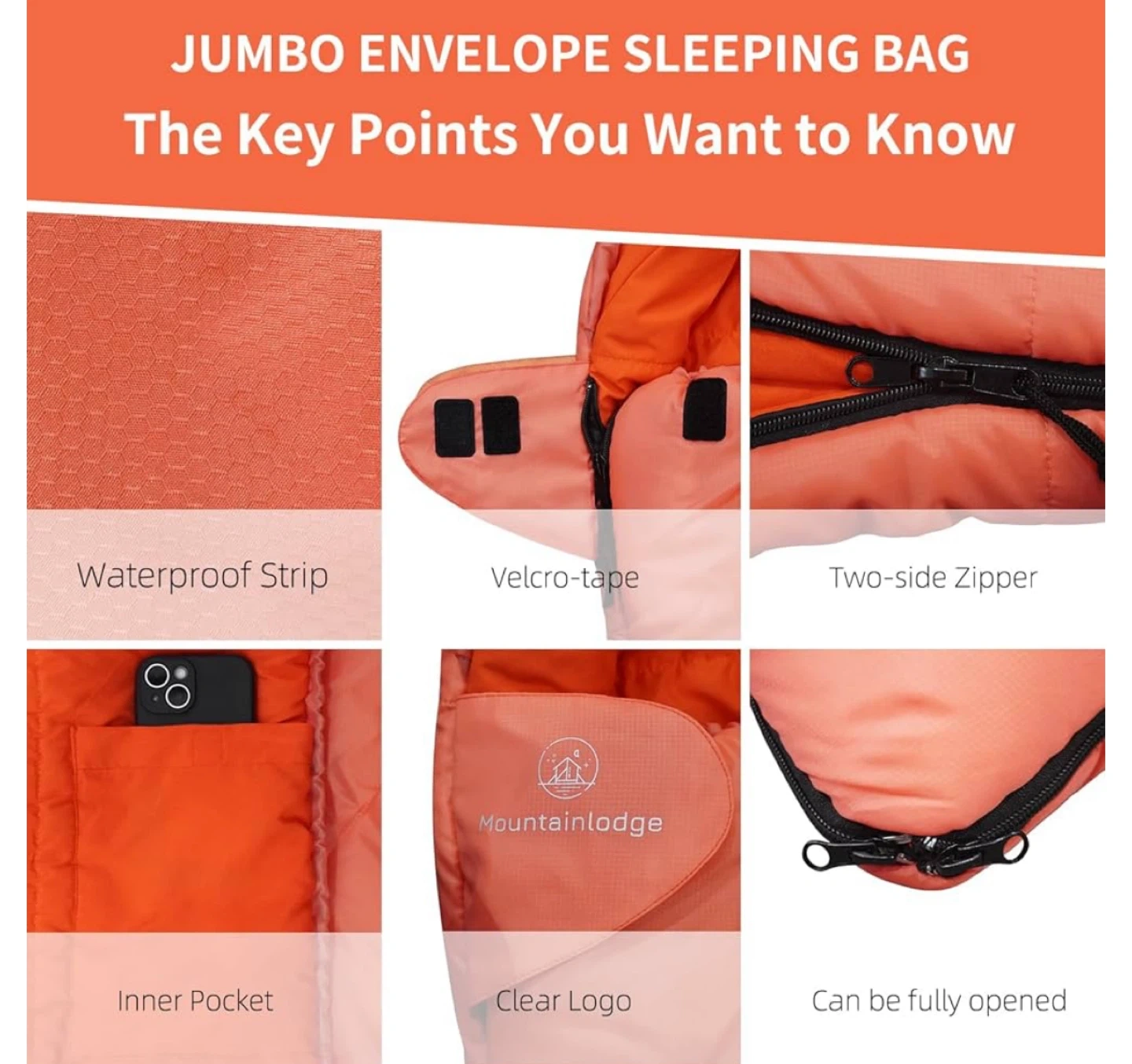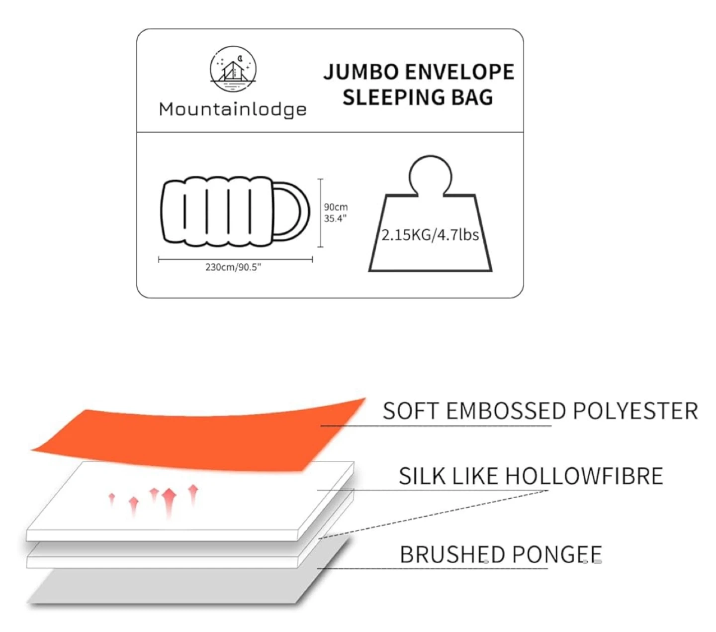 Get ready for your next camping trip with this Mountainlodge jumbo envelope sleeping bag! It's designed for both adults and kids, perfect for cold and warm weather.