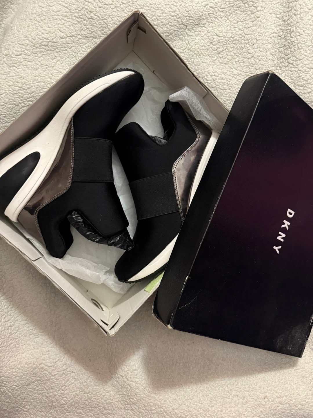 DKNY Borg Slip On Sneakers, size US 8.5. These stylish sneakers come in their original box
