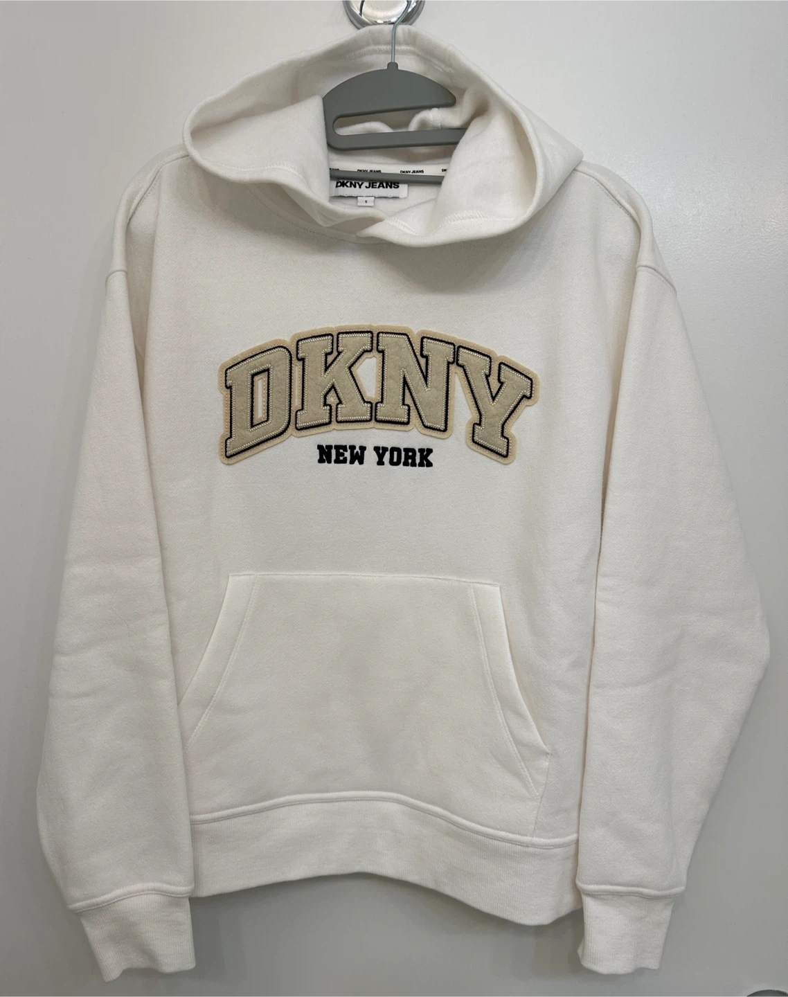 1000+Selling a DKNY Jeans hoodie in a cream color. It's a size S and in great condition. Perfect for layering or just lounging around!