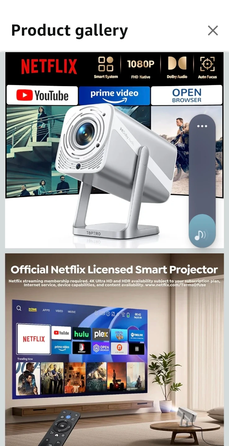 Official Netflix licensed smart projector with 1080P FHD native resolution. It supports Dolby Audio and features Auto Focus. This projector offers access to streaming services like Netflix, YouTube, and Prime Video.