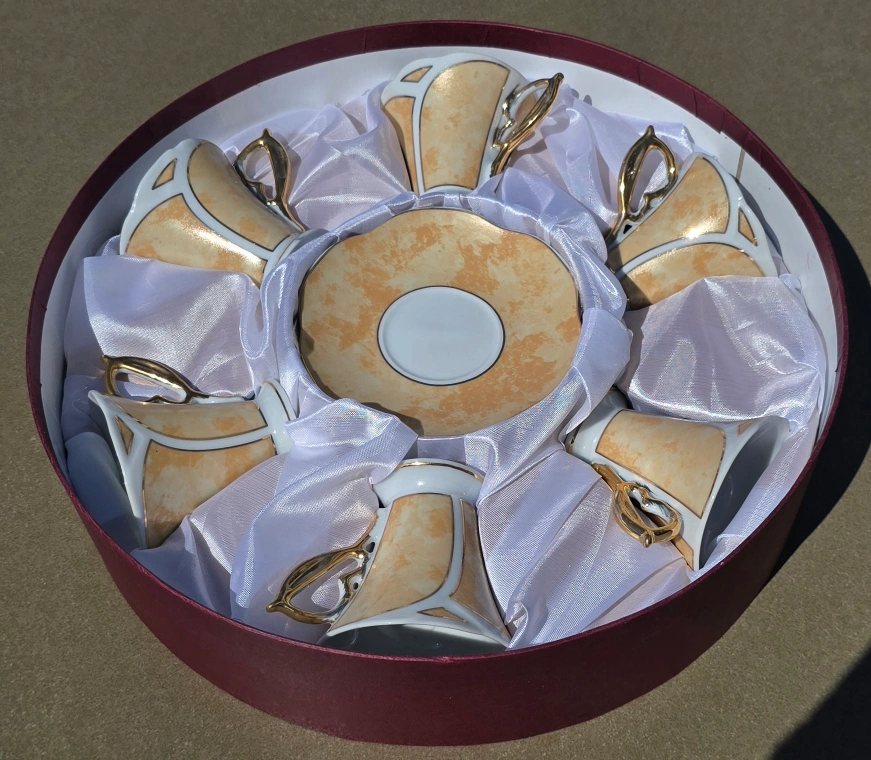 Selling a beautiful D'Lusso tea set, includes 6 cups and saucers. It comes in its original box! Never used.