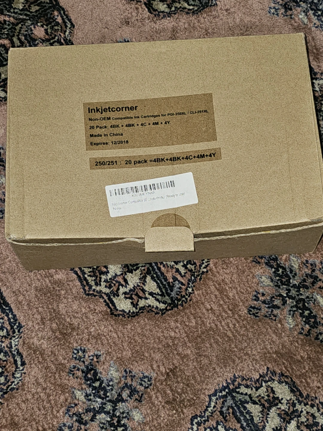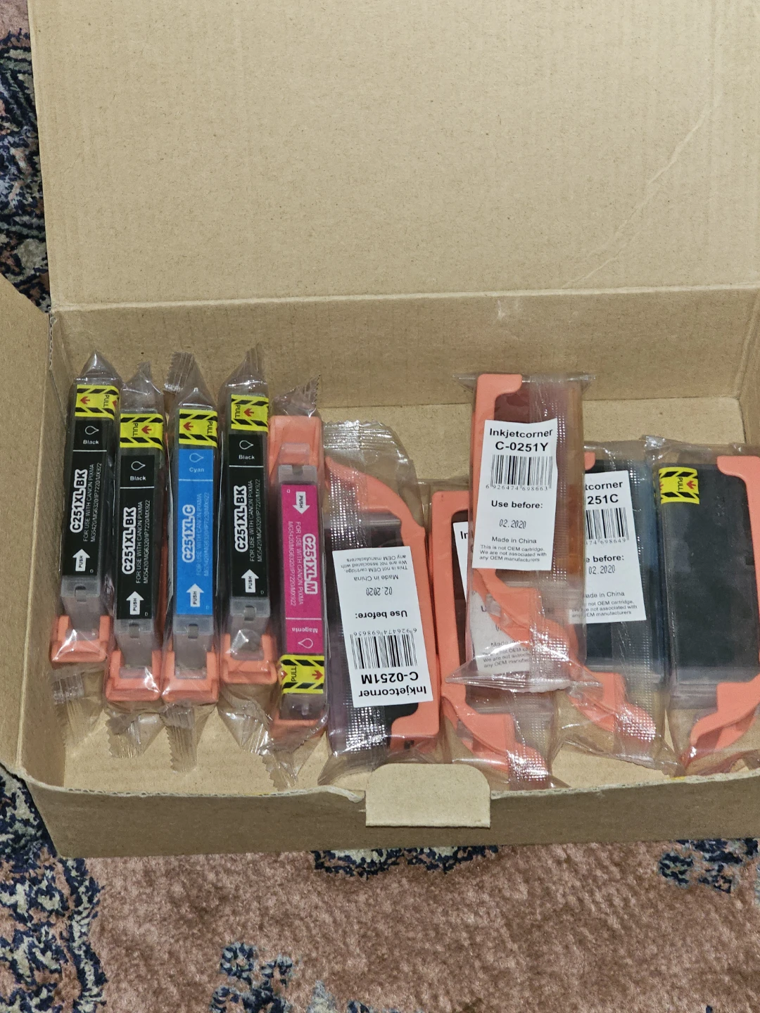 Selling a complete set of Inkjetcorner non-OEM compatible ink cartridges. This 20-pack includes 4 black, 4 cyan, 4 magenta, and 4 yellow cartridges. The cartridges are compatible with PGI-250XL/CLI-251XL printers. Expire December 2018