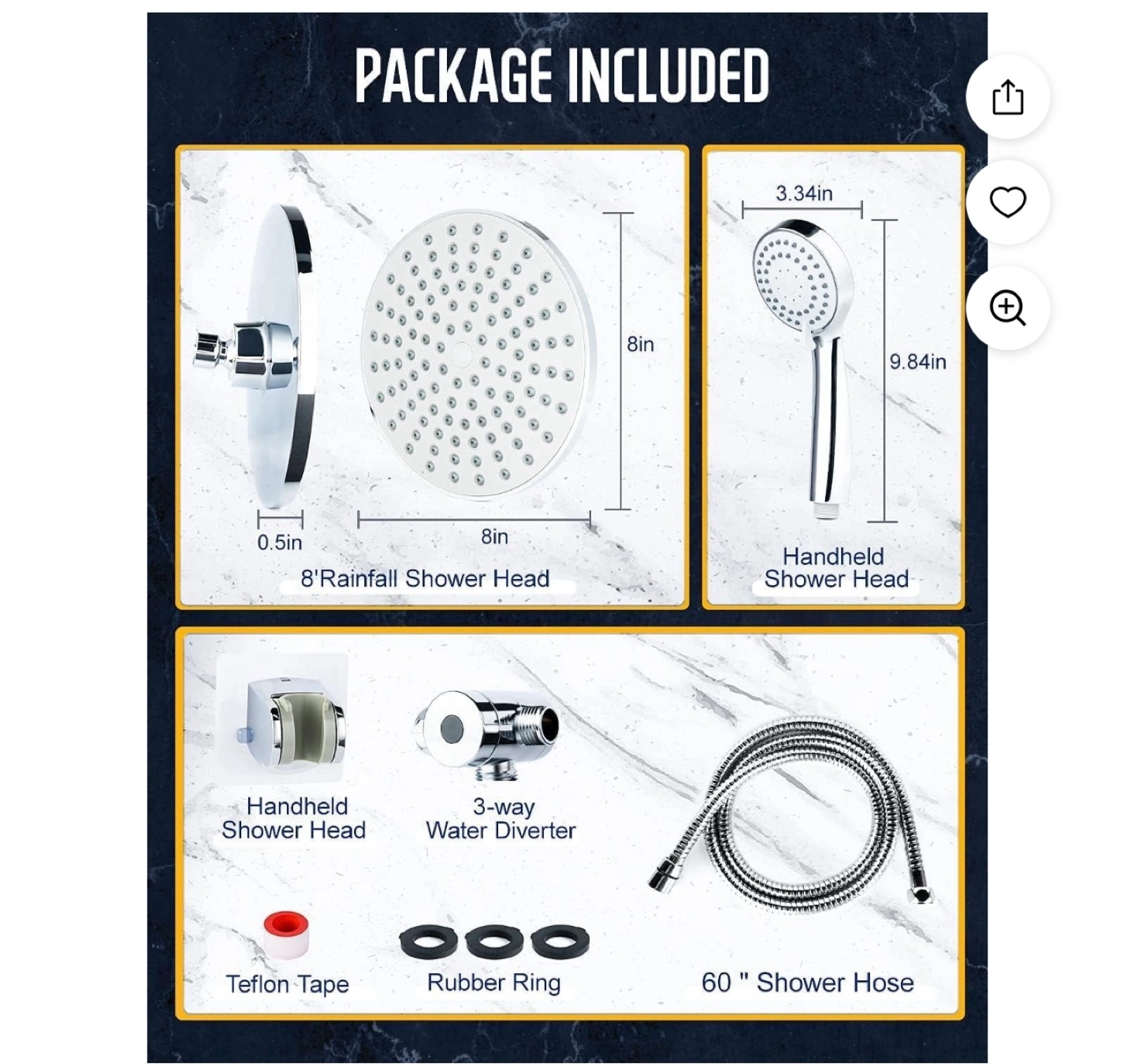 Selling a brand new Dnxnlalfy shower head combo! Includes: - 8' Rainfall Shower Head - Handheld Shower Head - 3-way Water Diverter - 60" Shower Hose - Teflon Tape - Rubber Ring Everything is still in the original box