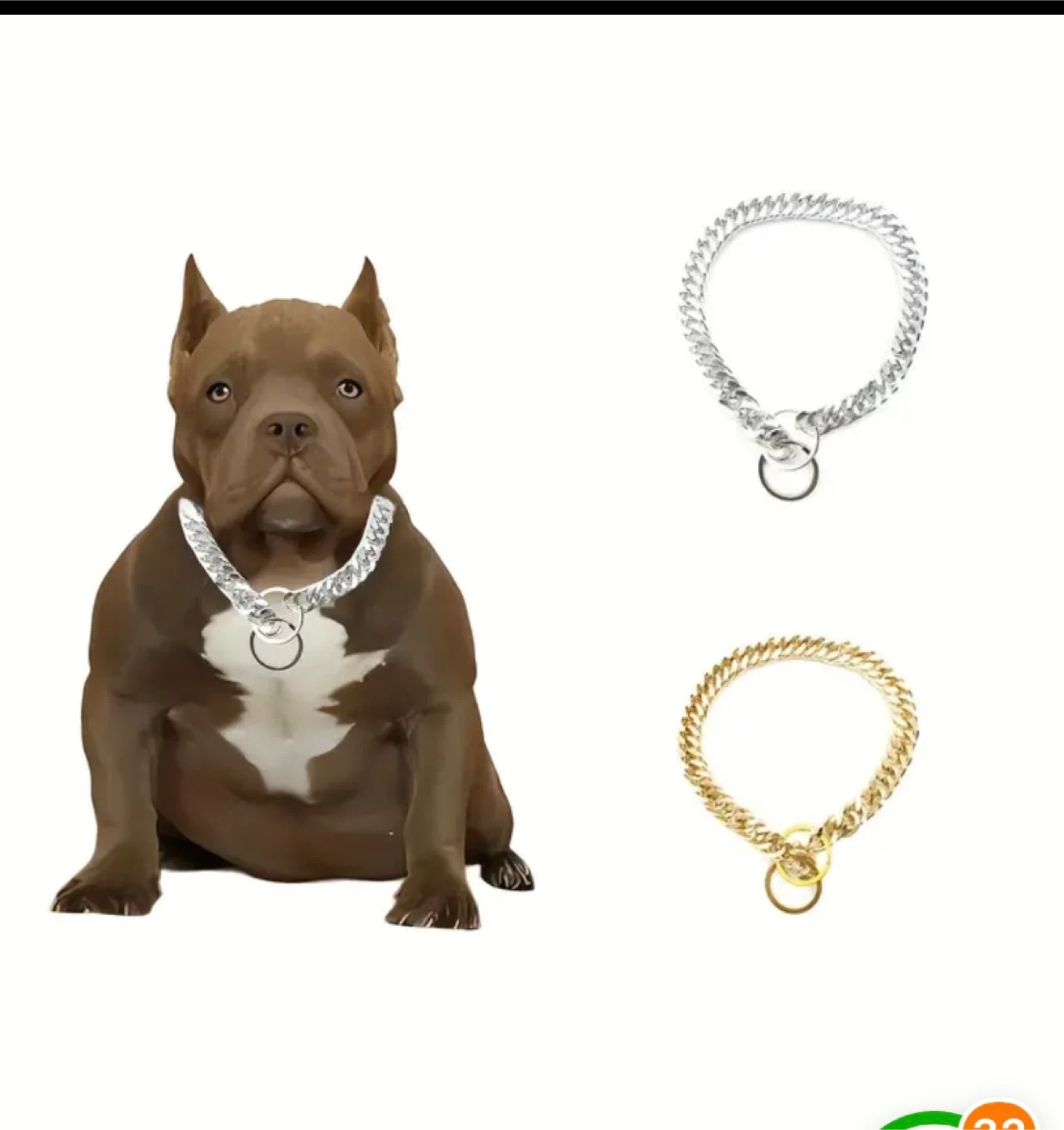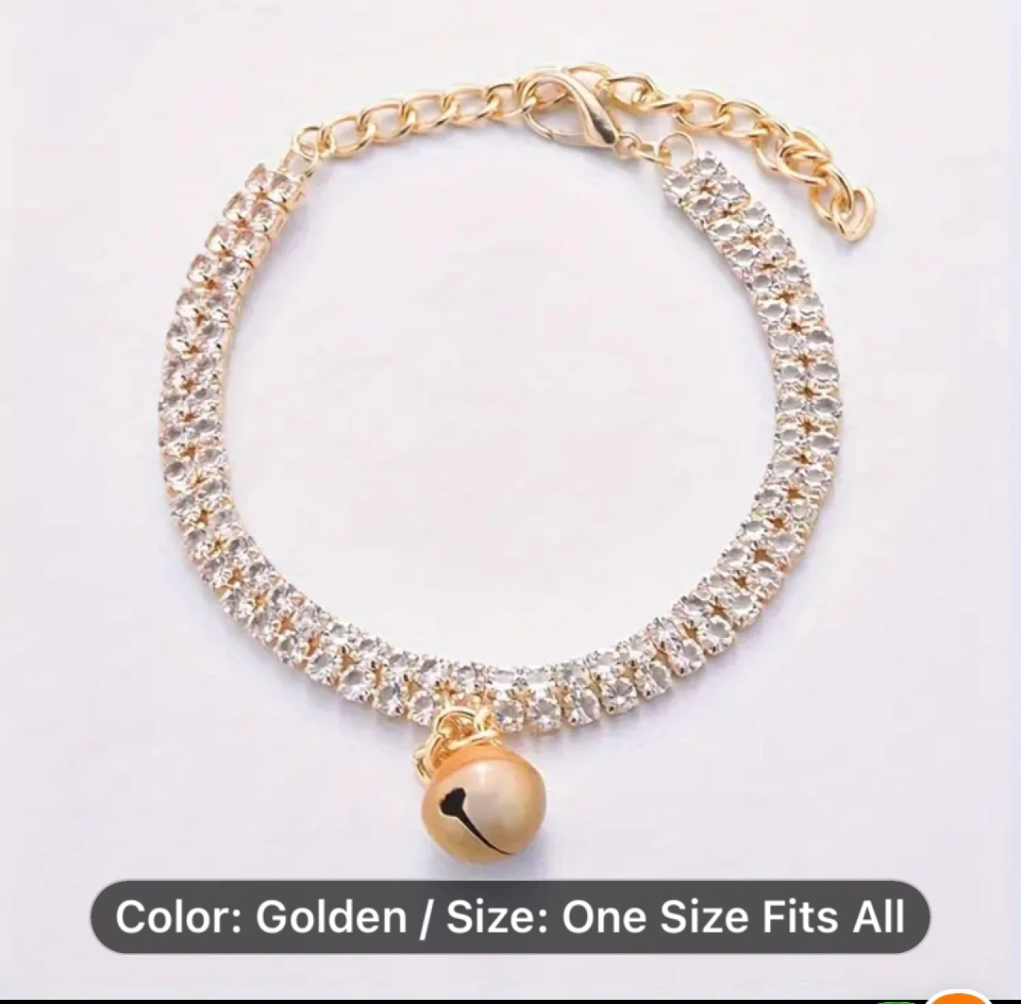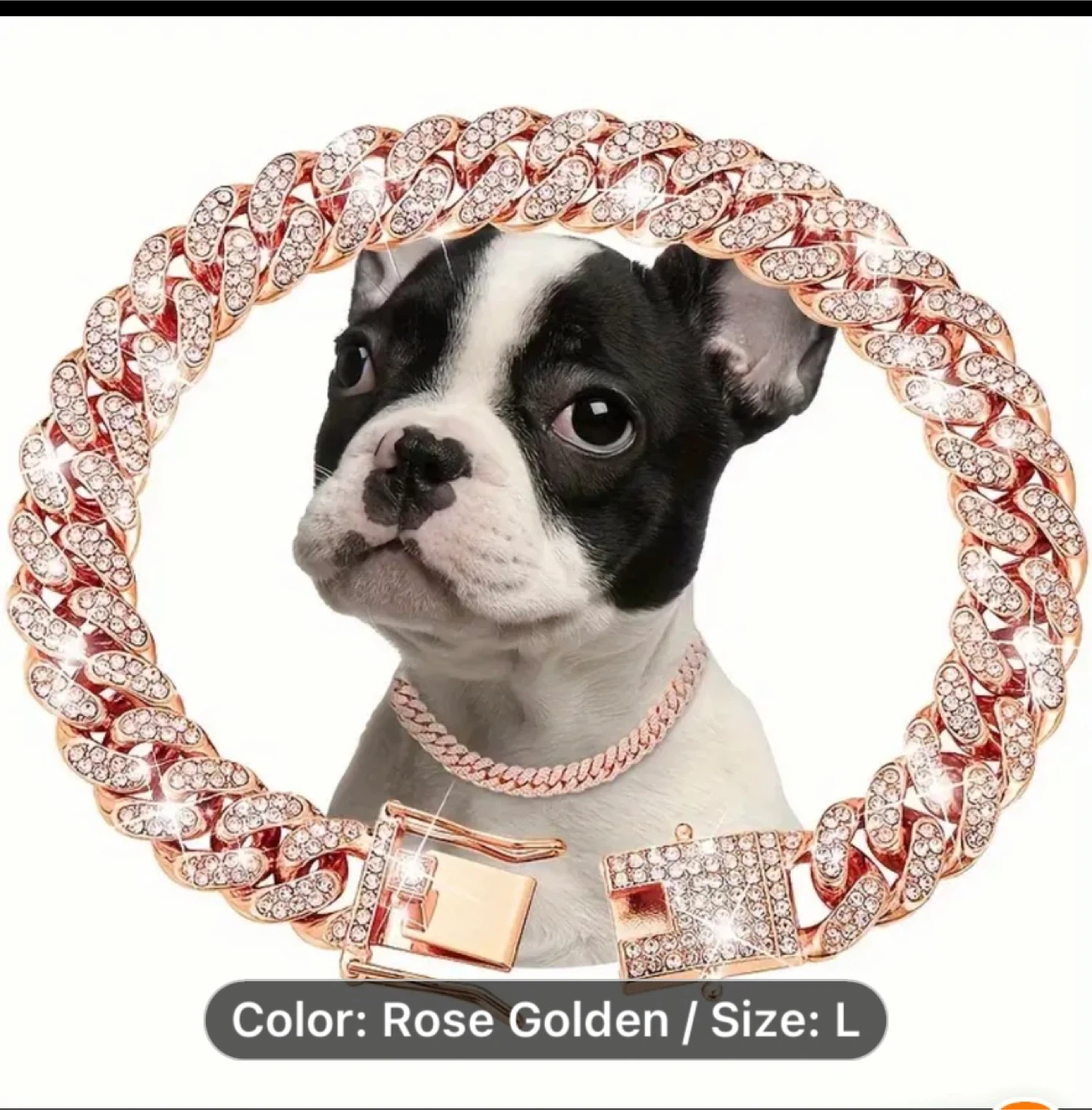 I'm selling a dog collar in golden color and size . It's perfect for your furry friend! Also available in silver grey and yellow (one size fits all)