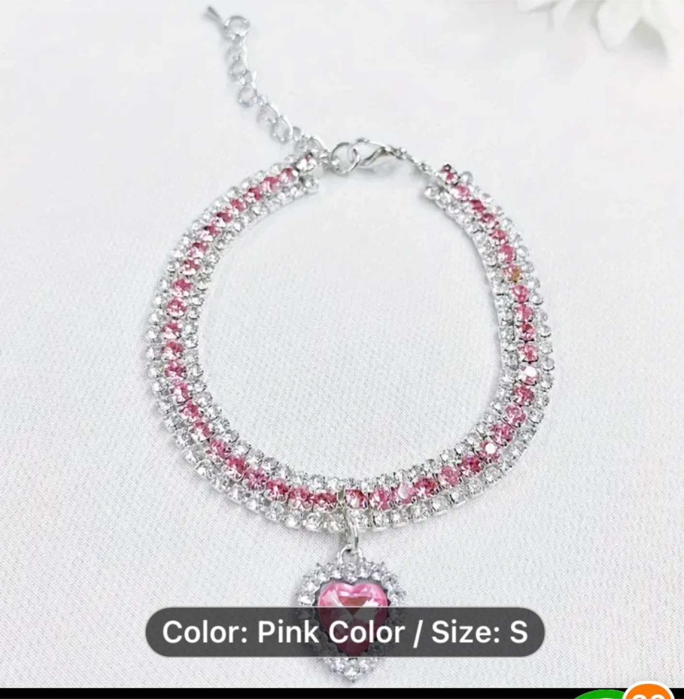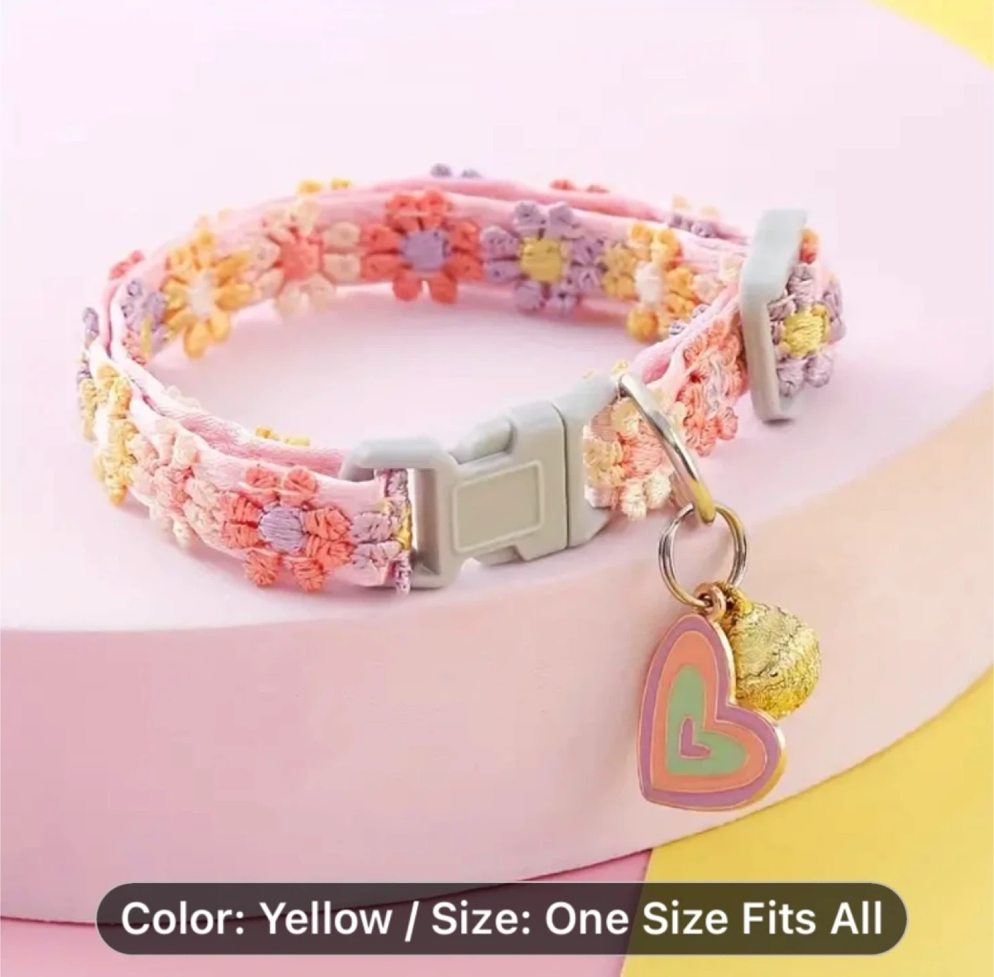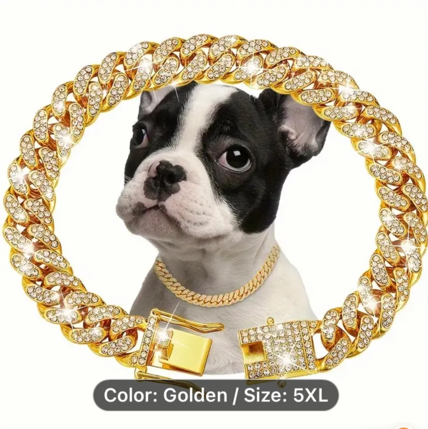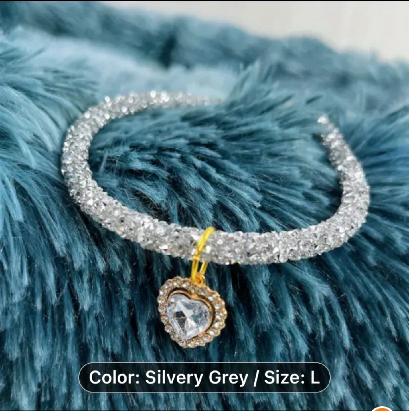 I'm selling a dog collar in golden color and size . It's perfect for your furry friend! Also available in silver grey and yellow (one size fits all)