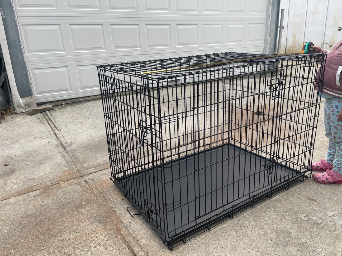 68Selling a dog crate that's about 42 inches tall. It is in good condition and ready for a new home! Comes with a divider and crate cover. Has a front door and a side door.