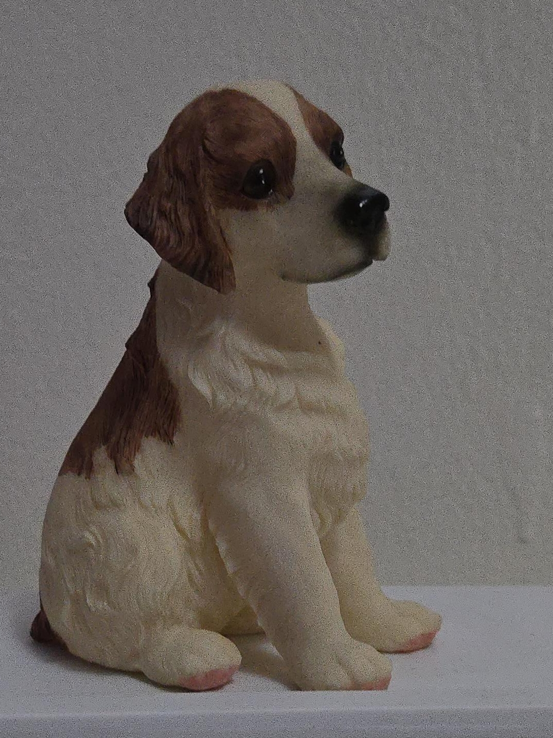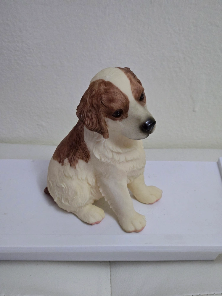This is a cute dog figurine! It would be a great addition to any collection or home decor