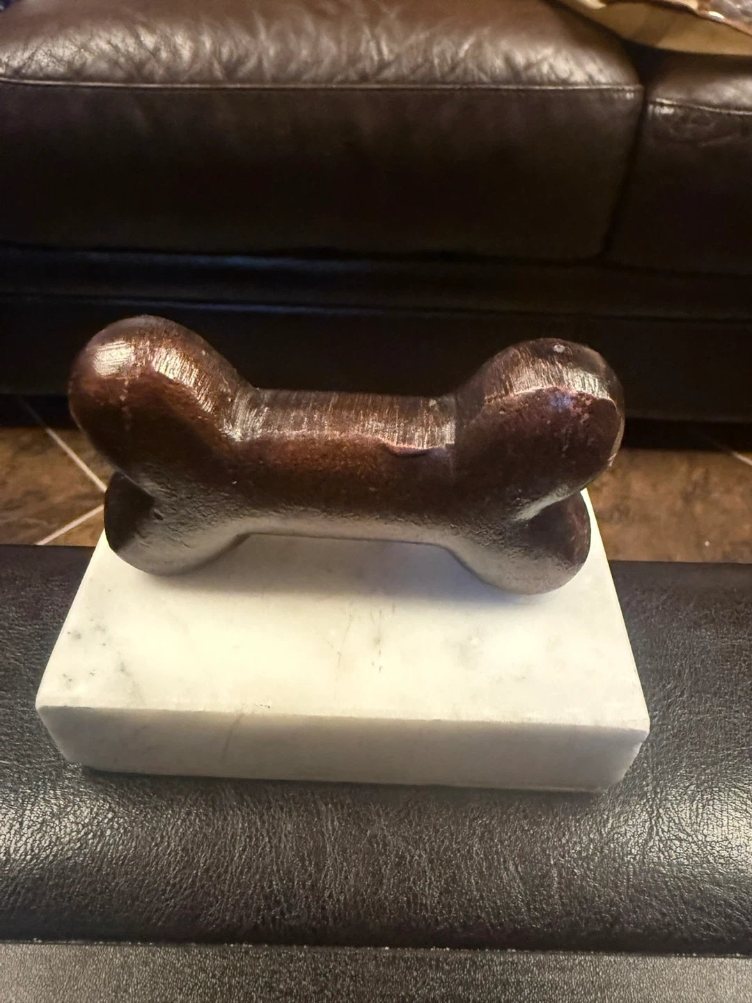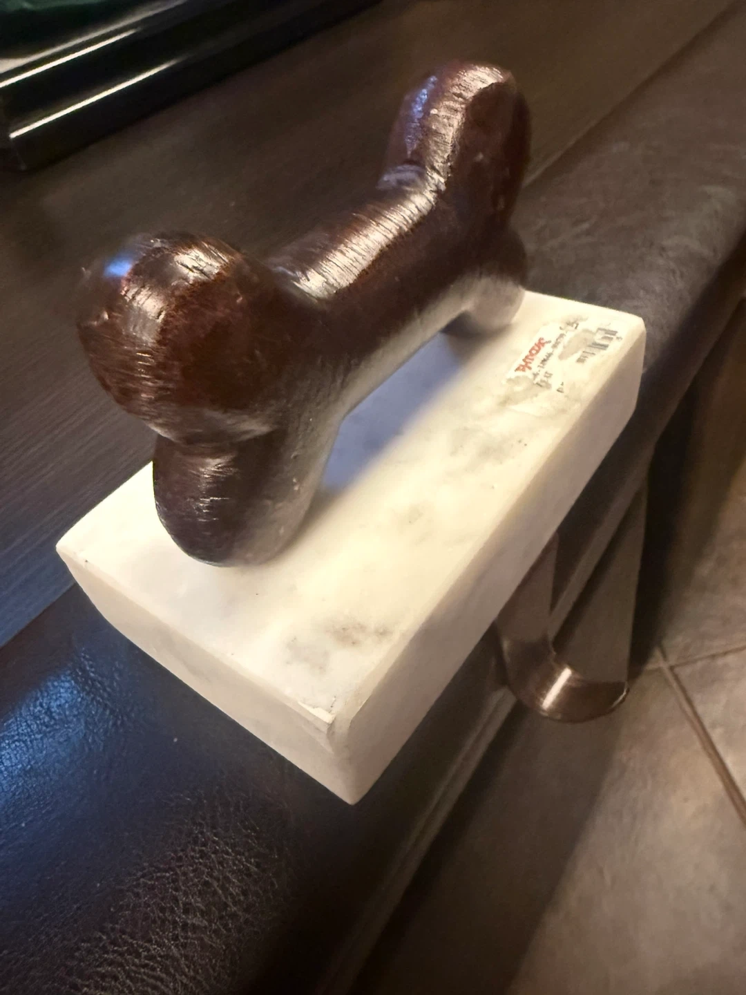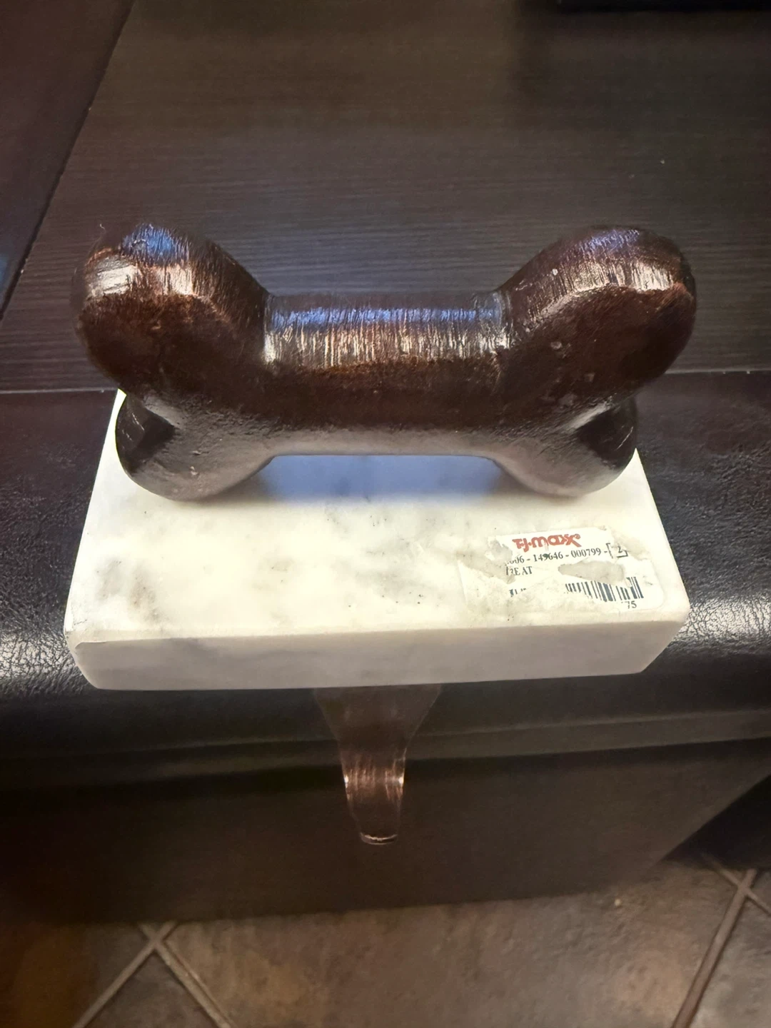 This is a dog leash holder from TJ Maxx. It has a marble base and a metal hook.