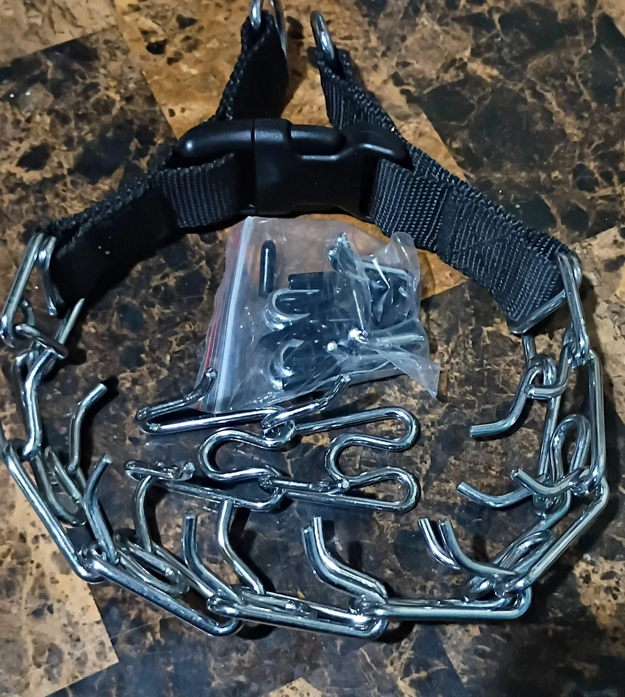 60This is a dog pinch collar with extra links. It's in good condition and ready for use. Perfect for training your furry friend!
