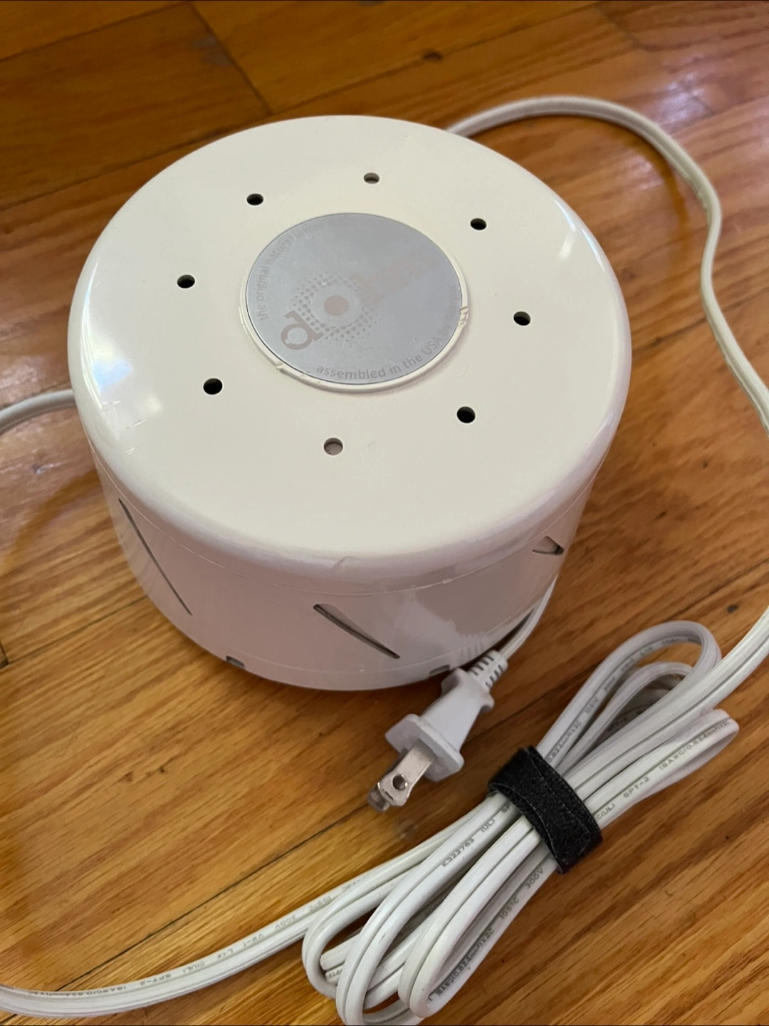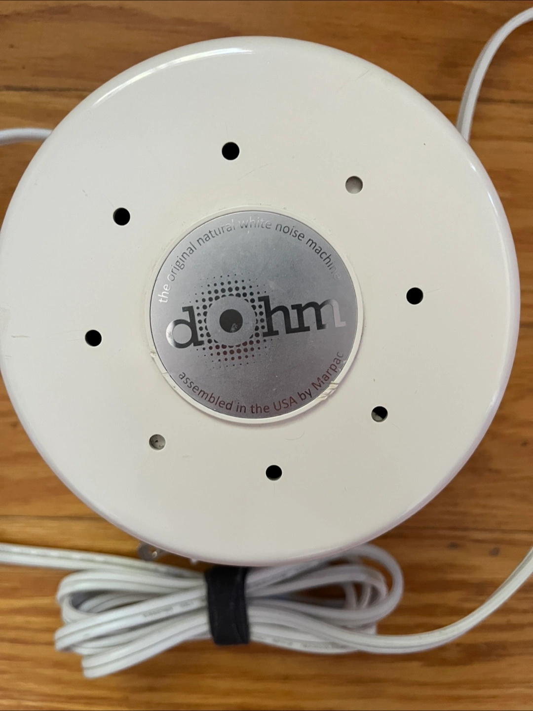 Selling a white noise machine from Dohm natural. It's in good condition and perfect for creating a peaceful environment. This sound machine is assembled in the USA by Marpac. It's designed to produce a consistent, soothing sound that helps block out distractions and promote relaxation. Great for sleep, studying, or just creating a calm atmosphere. I got this 1.5 years ago but I have barely used, because my air purifier has the same sounds.