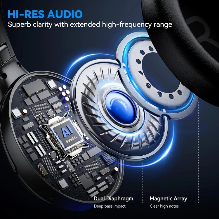Hi-Res Stereo Sound: Immerse yourself in rich, high-fidelity audio with our hybrid active noise canceling headphones wireless. 40mm composite drivers deliver deep, resonant bass and crisp highs, while the vocal enhancement algorithm ensures clear vocals and lifelike dialogues.