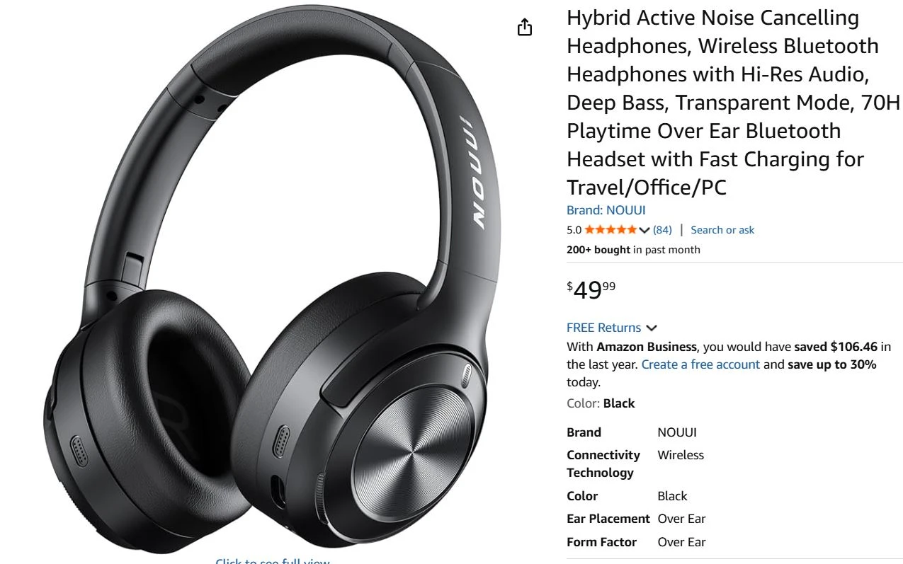 Advanced Noise Cancellation Technology: Enjoy true quiet with hybrid active noise cancelling headphones, featuring front and rear microphones that block up to 42dB of low-frequency noise from airplane engines, subway rumbles, or office chatter. Whether flying, commuting, or relaxing at home, create your own peaceful space and stay fully immersed in crystal-clear sound. Easily switch between Noise Cancelling, Transparency, and Normal modes for the best listening experience anywhere