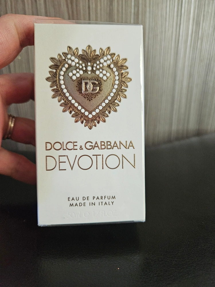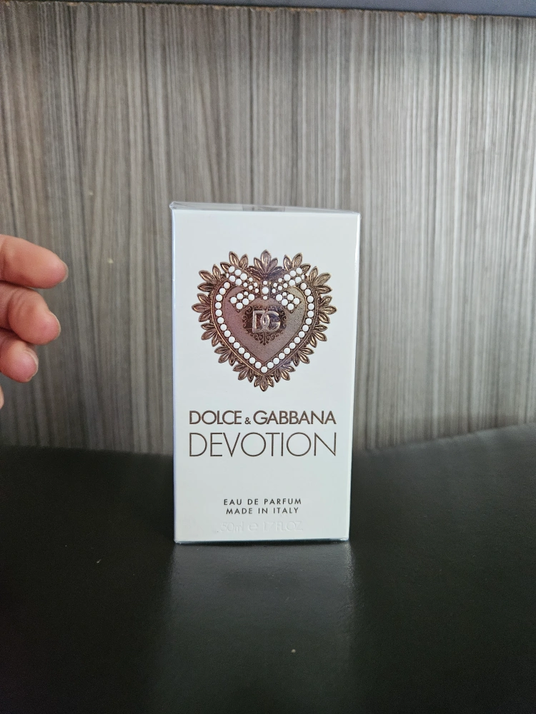 Selling a brand new Dolce & Gabbana Devotion Eau de Parfum. This is a 50ml (1.7 fl oz) bottle, still in its original packaging. The scent features notes of candied citrus, orange blossom, and vanilla. It's made in Italy.