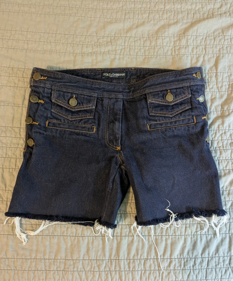 Excellent condition EU 38 (low-rise shorts) 100% cotton Made in Italy https://www.dolcegabbana.com/en-us/en-us/fashion/children/boy-2-13-yearsousers-and-shorts/blue-wash-denim-jersey-shorts-blue-158059579377862.html?utm_source=cwc&utm_medium=affiliate&utm_campaign=redbrain&utm_content=cpa&clickref=1110lbqSEcs