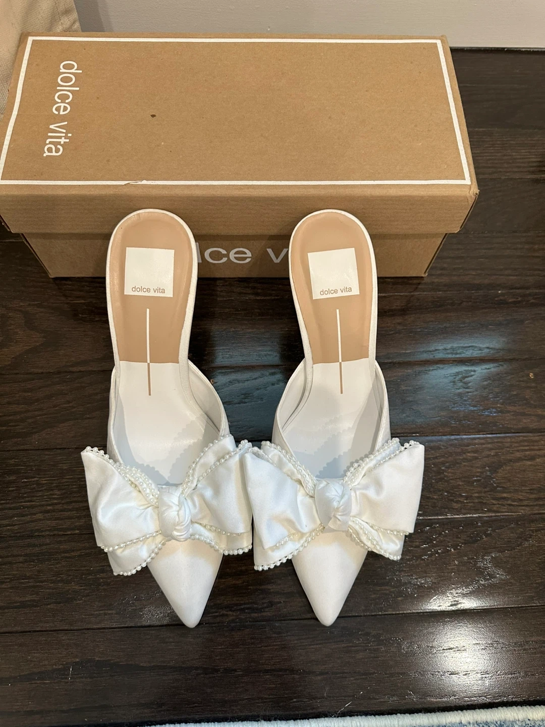 Selling a pair of never worn Dolce Vita Vanilla Pearls heels in size 6.5. They are in great condition and come with the original box! These stylish heels feature a beautiful bow and pearl detailing, adding a touch of elegance to any outfit, or could make for the Perfect wedding shoes.