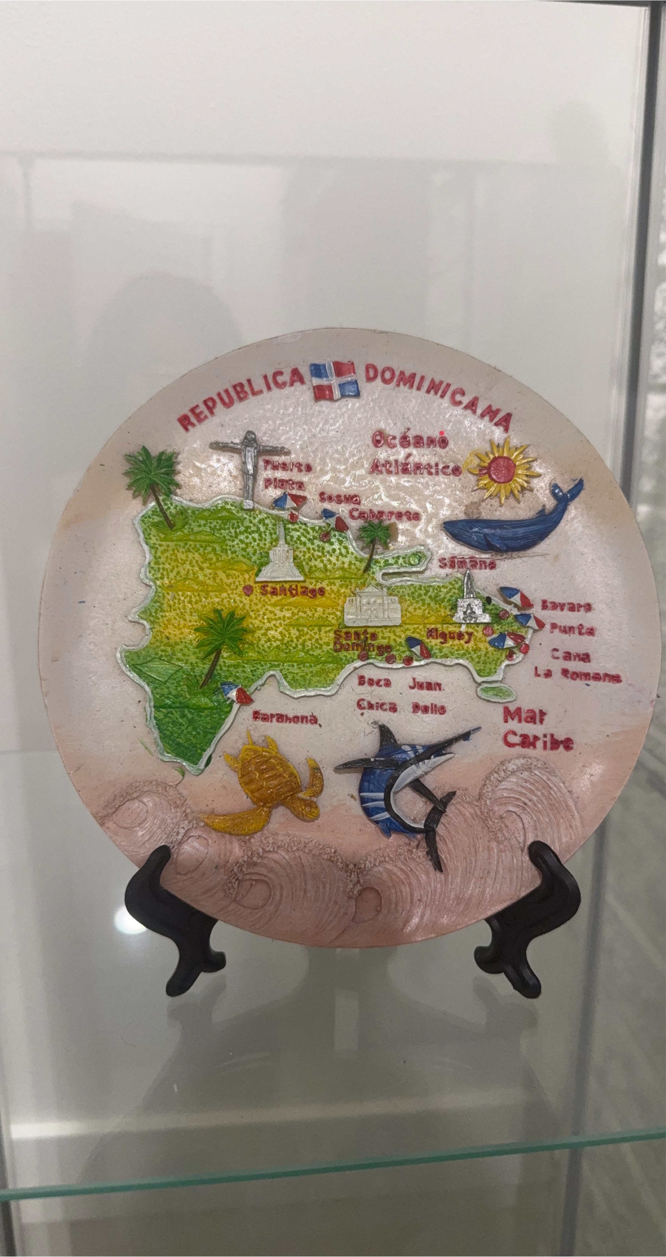 10Selling a cute souvenir plate from the Dominican Republic! It has a map of the island with little icons for different cities and landmarks. Perfect for adding a touch of travel to your home decor
