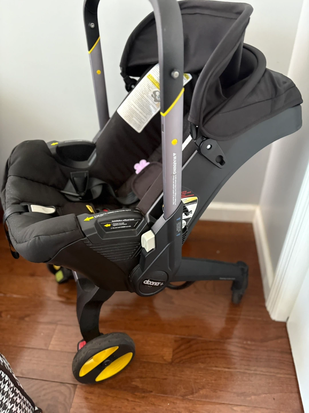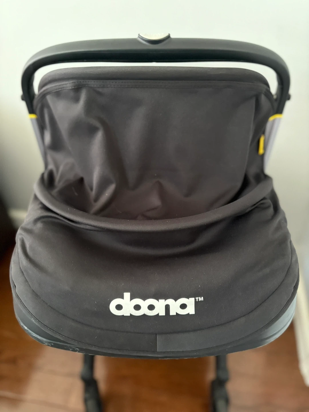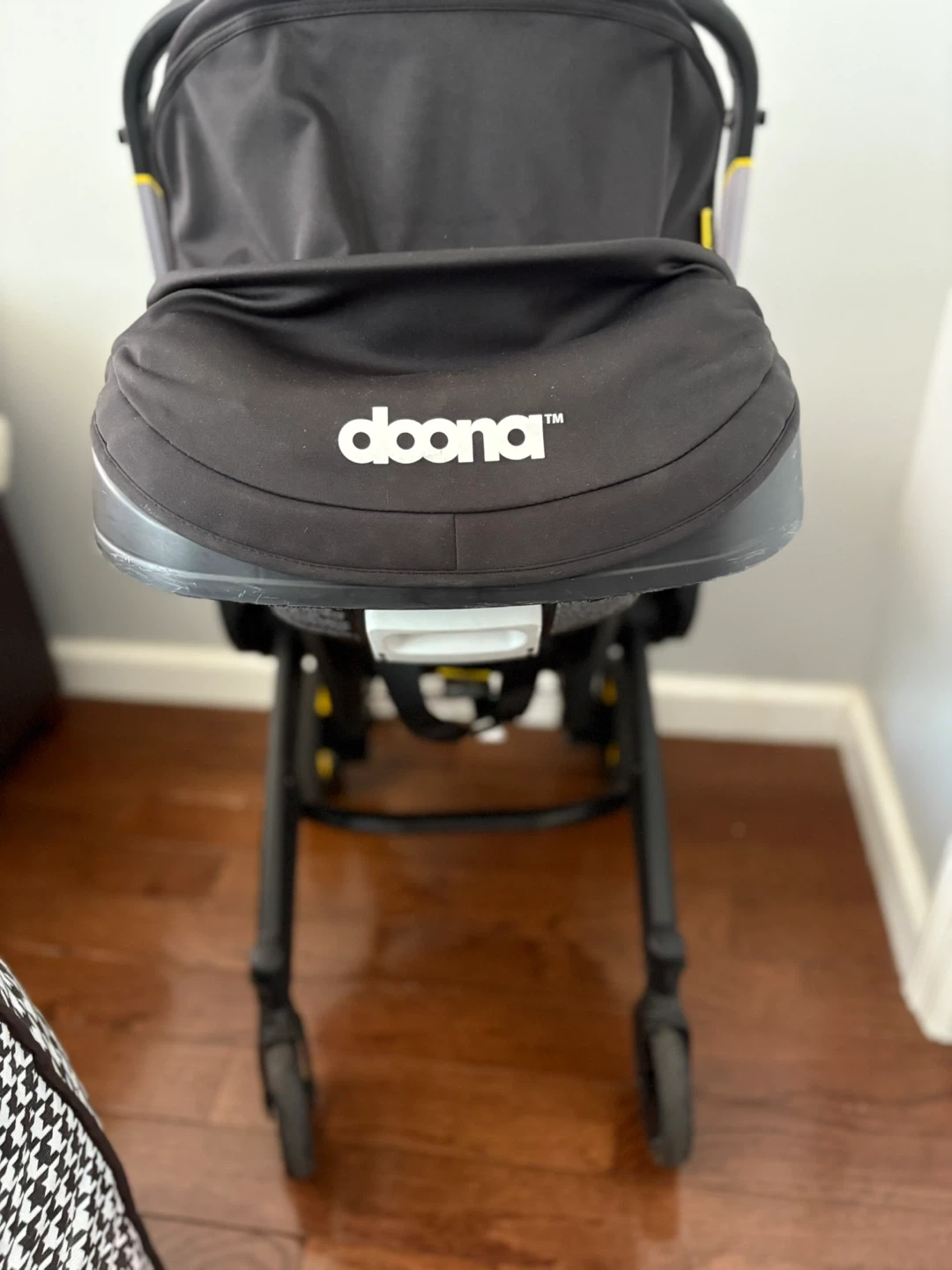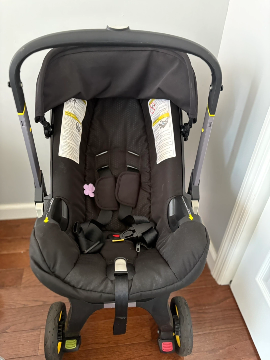 Selling a Doona infant car seat and stroller combo in black! It's in great condition and ready for a new family. This is a super convenient system for parents on the go! Expiration 2028- Come with rain cover, compatible bag, Newborn inserts.
