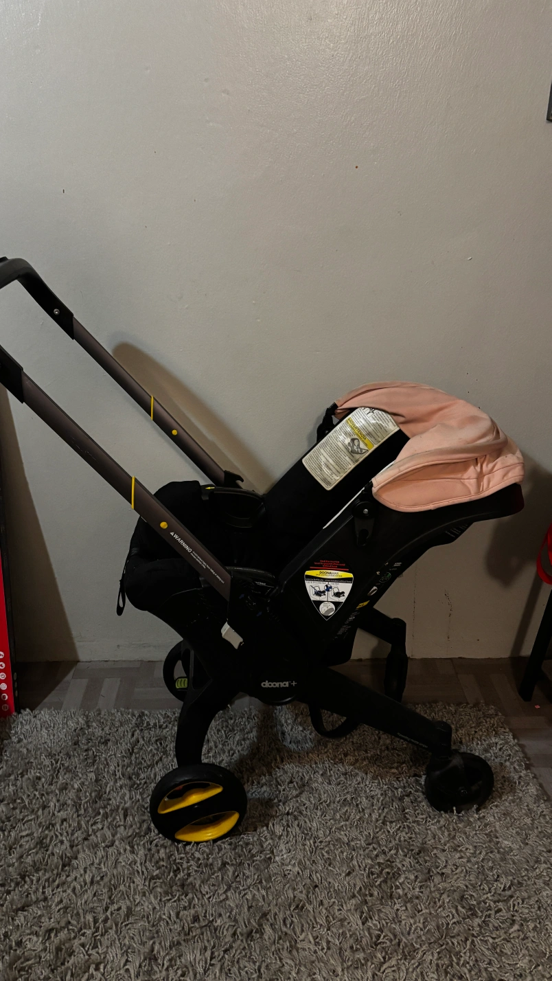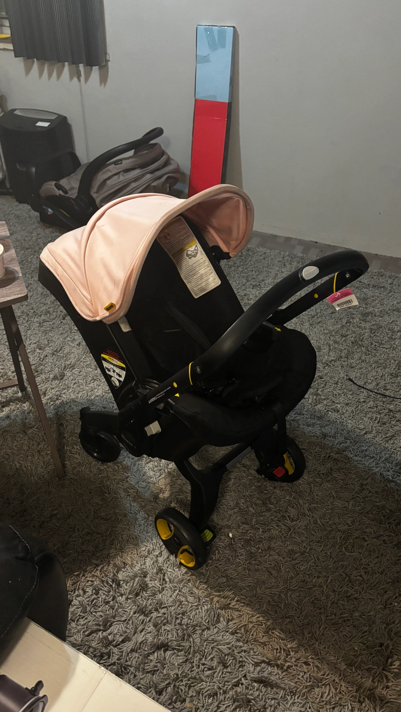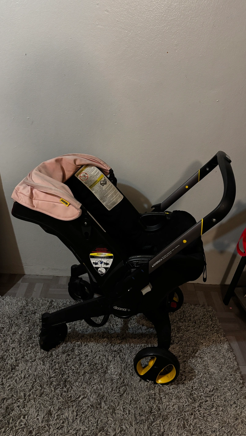 Selling a Doona infant car seat and stroller combo! It's in great condition and has a pink canopy. This is super convenient for travel and everyday use. It easily converts from a car seat to a stroller, making it perfect for parents on the go