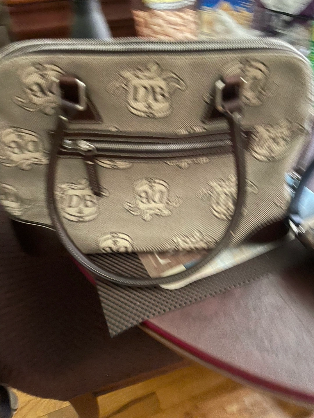Selling a Dooney & Bourke satchel. It features the classic DB logo pattern. The bag has a zipper closure and handles. Great for everyday use!