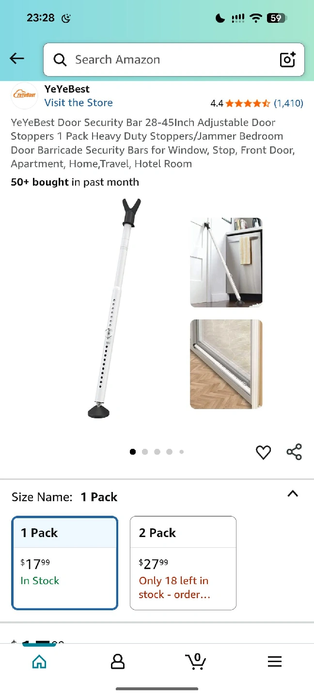 Selling a door security bar. Adjustable length 28-45 inches. Original price $18. Selling because of relocating. If you need anything else please check out my other listings 😊