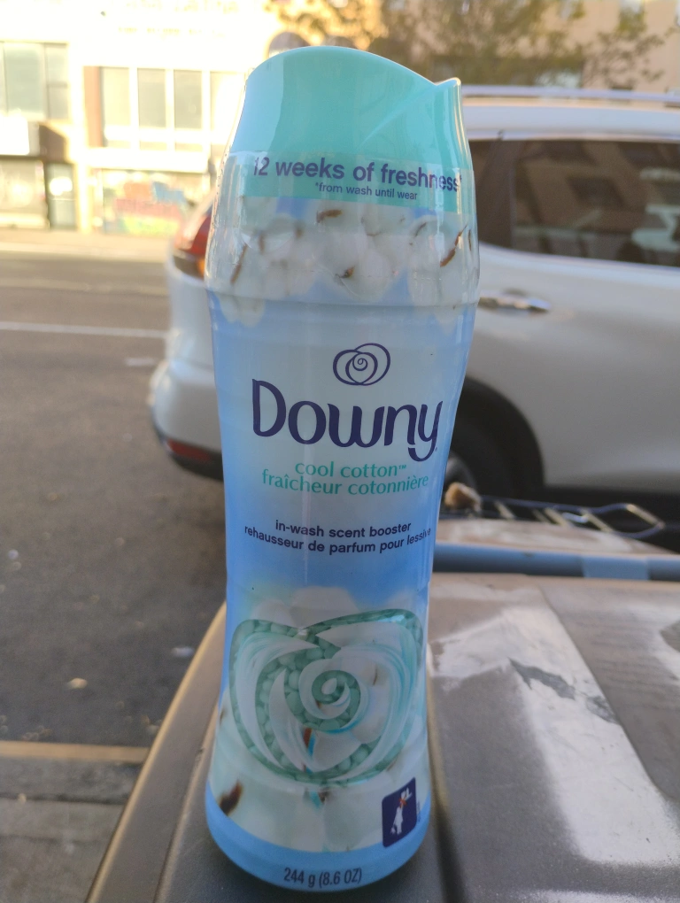 Selling a bottle of Downy Cool Cotton in-wash scent booster! It promises 12 weeks of freshness from wash until wear. The bottle contains 244 g (8.6 oz) of the product